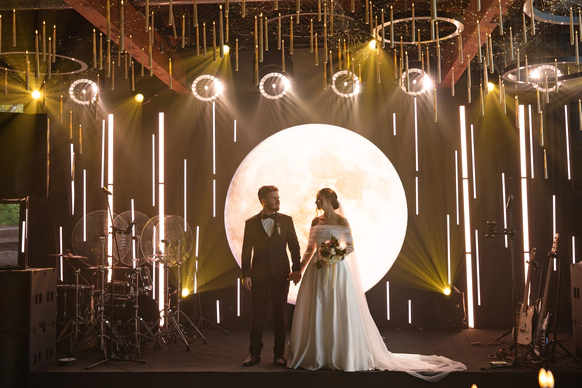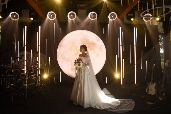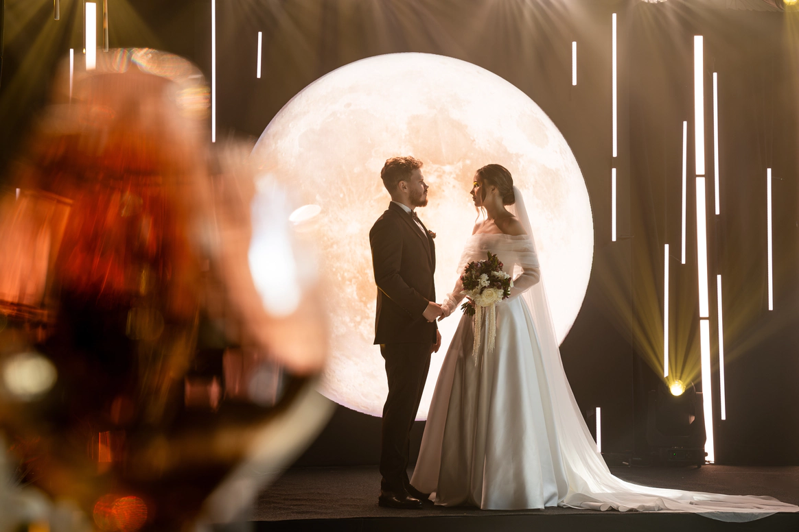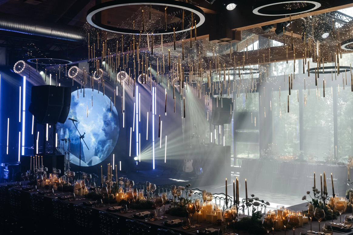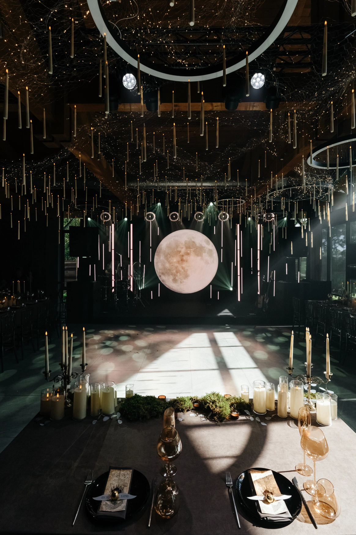 Одной из ключевых изюминок оформления стала масштабная луна, собранная из LED-экранов. Она погружала гостей в атмосферу тайны и волшебства, переодически трансформируясь в образ магического шара.