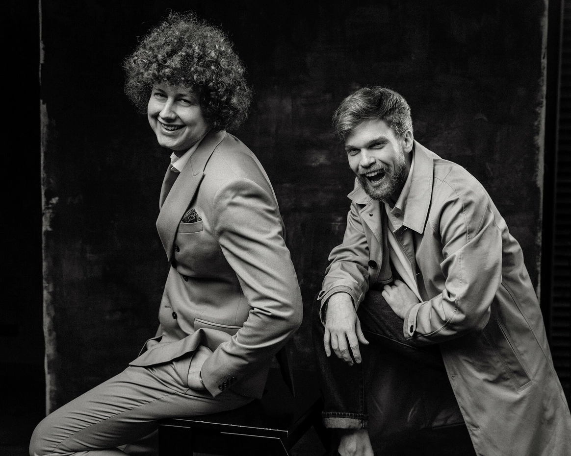 · "Парочка простых и молодых ребят ... " - Мумий Тролль · Самородки с периферии - Женя (кудрявый) с Магнитогорска, Саша (бородатый) с Нижнего Тагила. Покорили Уральскую столицу, двигаемся дальше покорять Россию · Ведущие, друзья, креаторы, женатики · Две противоположности дополняющие друг друга: боксер/ шахматист, сова/жаворонок, позитивный/душнила (догадаетесь who is who?) · На двоих масса интересов от приготовления капкейков до прыжков без парашюта (в планах, если не окажемся хотя бы в тридцатке лучших)