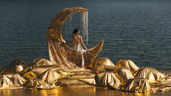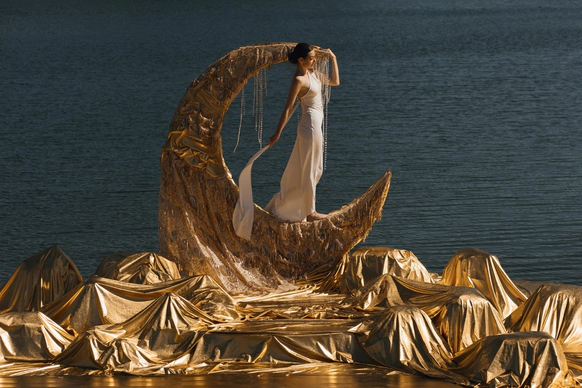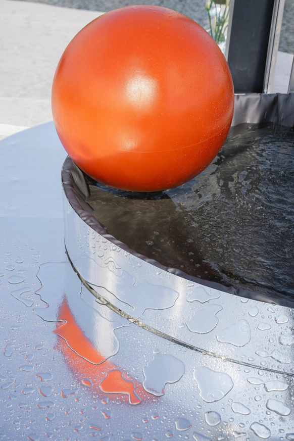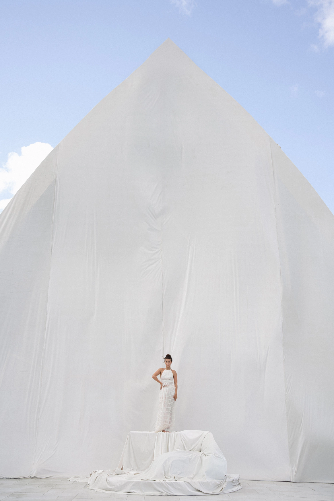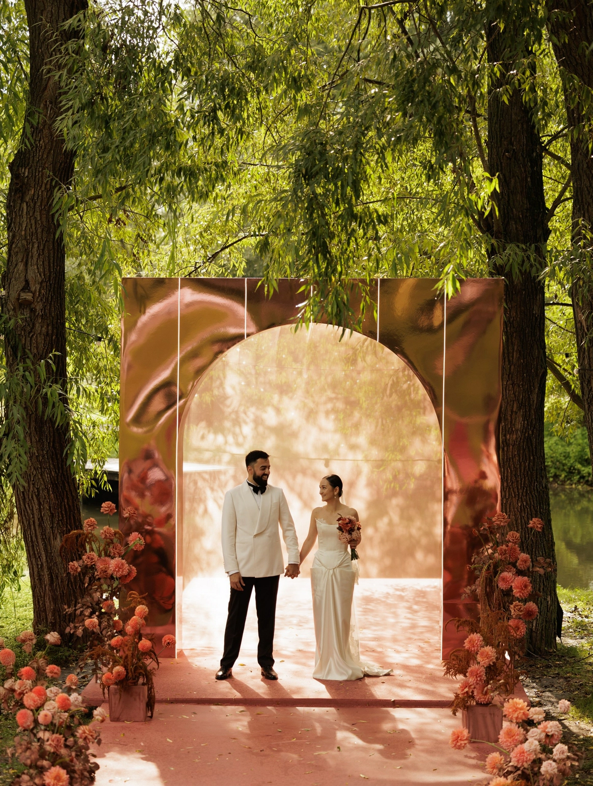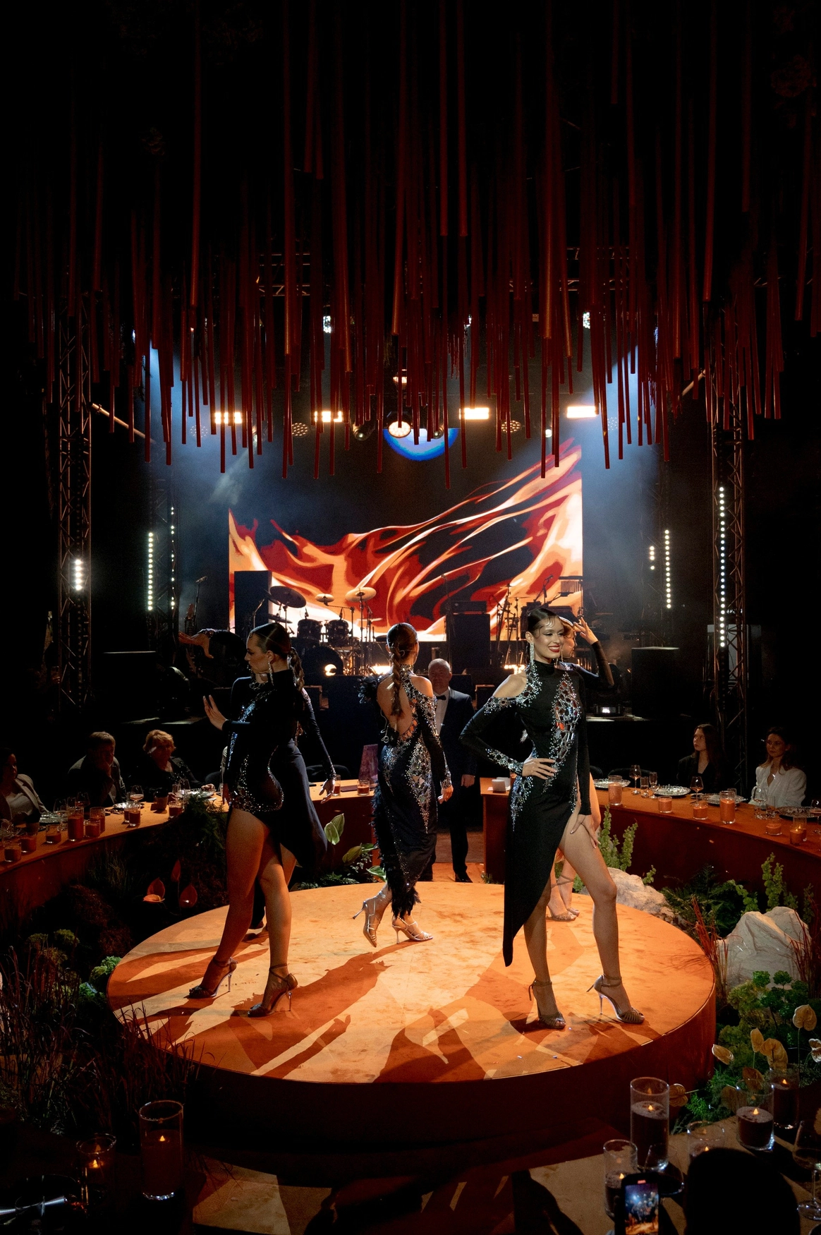 Зоной церемонии стала футуристичная арка со встроенным водопадом и бассейном на подиуме — инженерный арт-объект, раскрывающий концепцию баланса.