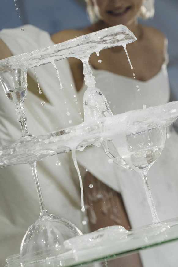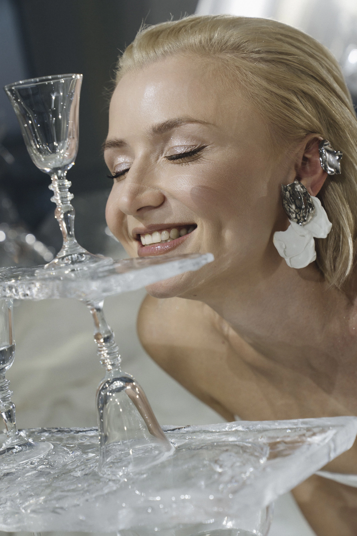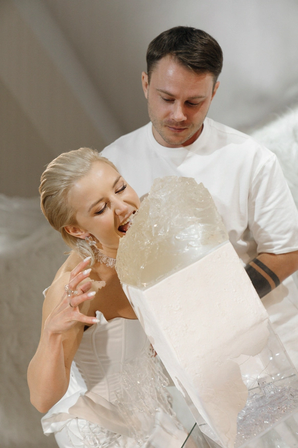 Сет-дизайн был дополнен подачей фуршета на ледяных глыбах и сервировочной посудой, имитирующей лёд.