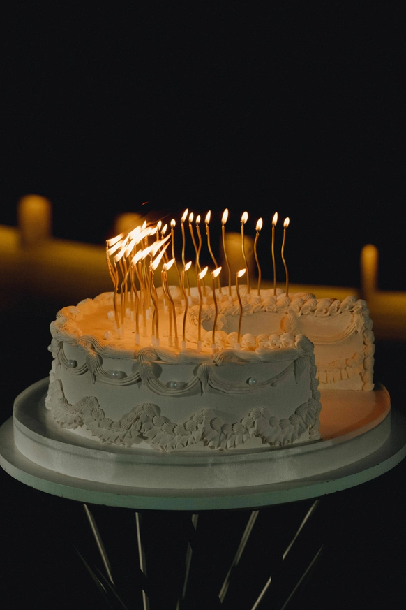 Торт в форме полумесяца со свечами мы подали на пирсе в зоне