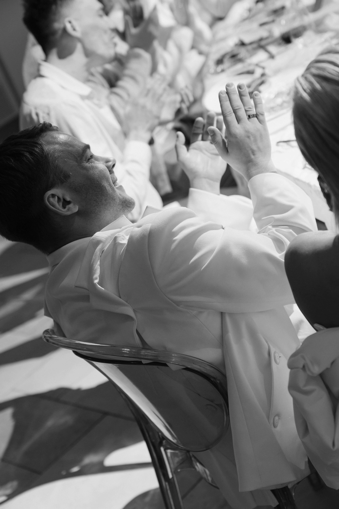 Для гостей мы записали аудио-пранк до свадьбы и показали его на ужине. Их реакции легли в основу сценария и позволили представить гостей друг другу.