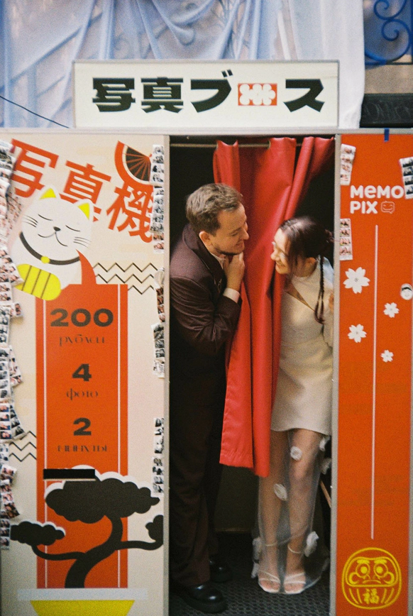 Пара начала свой день в уютном азиатском ресторанчике, словно перенесённом из шумных улочек Сеула: ароматы кимчи, бокалы соджу и обязательная фотосессия в винтажной фотобудке.