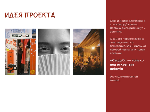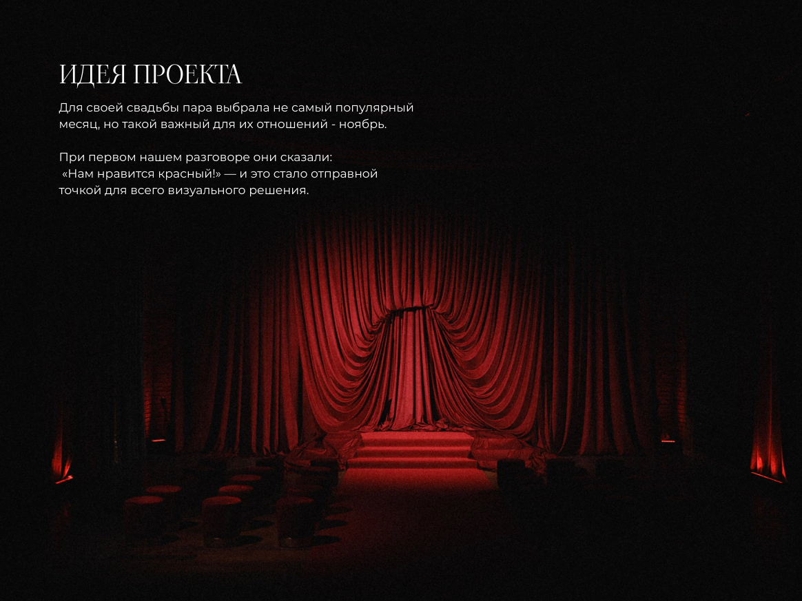 Поэтому основной задачей проекта стало организовать всё так, чтобы максимум удовольствия получили не только от результата, но и от самого процесса подготовки и свадебного дня.