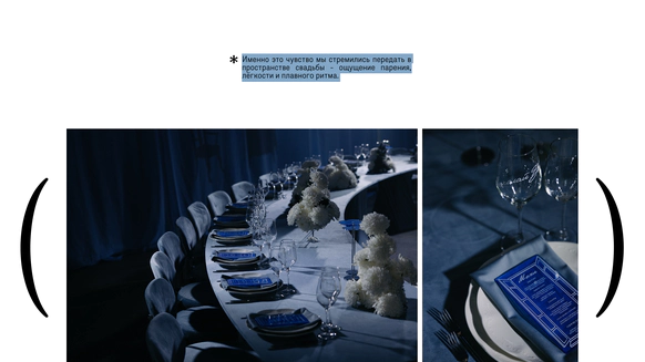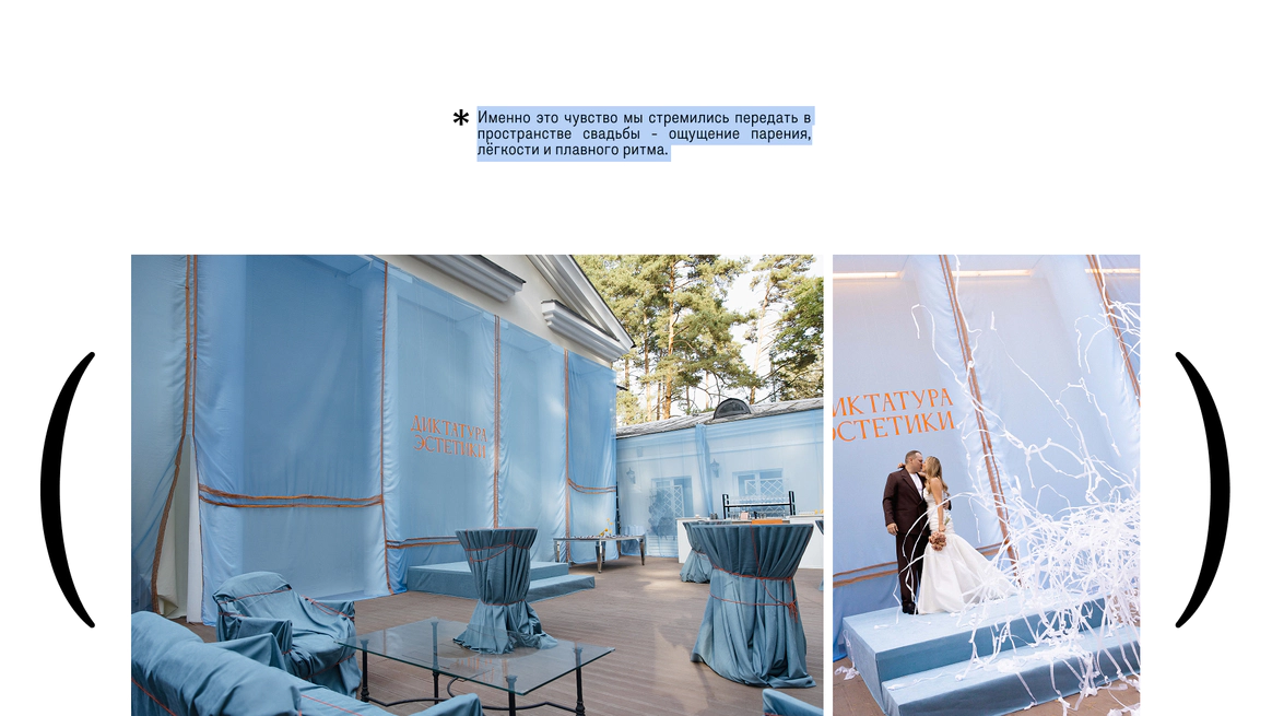 Свадьба в стилистике air-couture и лёгкой полупрозрачной драматургии.