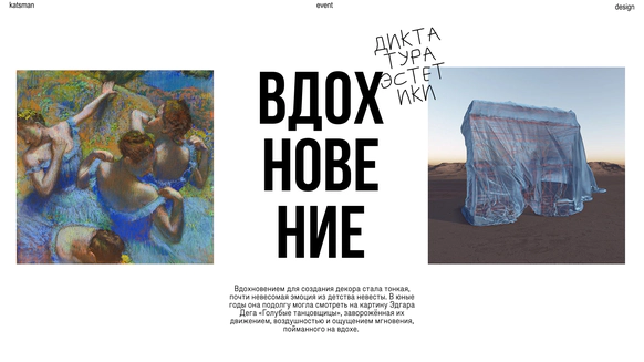 Привет! Меня зовут Наташа Кацман. Я декоратор и основатель команды, которая превращает пространство в впечатление. Наш подход - видеть потенциал локации и раскрывать его через точные и иногда смелые решения. Нас вдохновляют искусство, природа, мода, архитектура и смелые идеи. Поэтому в наших проектах часто появляются арт-инсталляции, неожиданные материалы и решения, которые немного выходят за рамки привычного свадебного декора. Мы считаем, что события должны удивлять. К нам приходят за стилем, атмосферой и идеями, которые выглядят современно и запоминаются надолго. До встречи♡