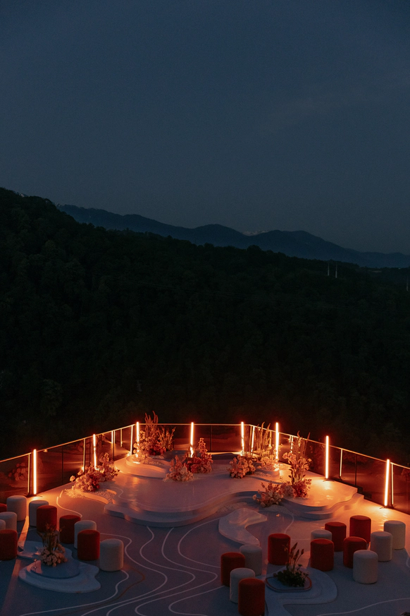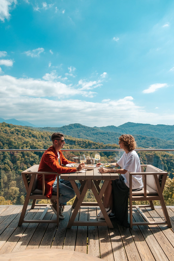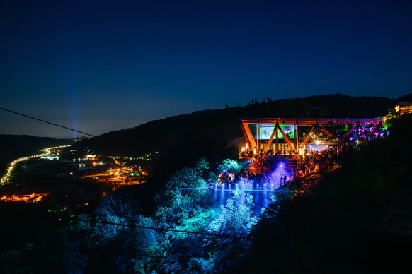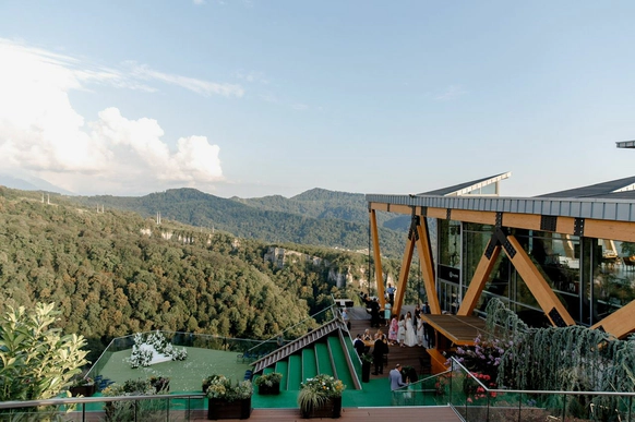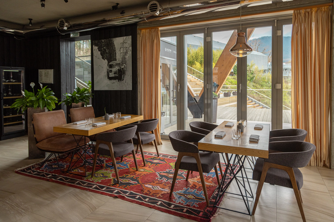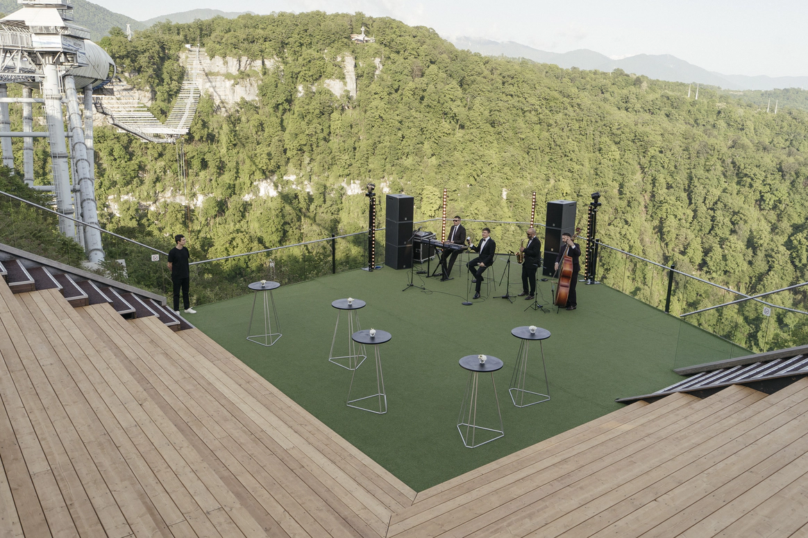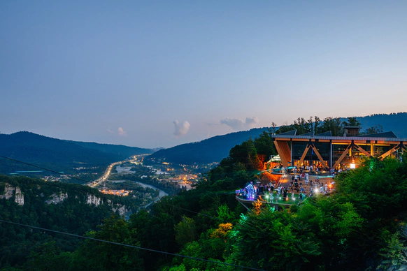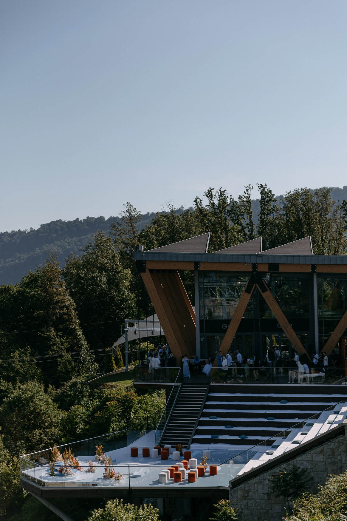 Панорамный ресторан Кáури расположен в Сочинском национальном парке среди живописной горной природы на территории «Скайпарк Сочи». Он словно парит над рекой Мзымта, а с него открываются виды на колхидский лес, Корабельные скалы и Чёрное море. Это идеальное место для проведения незабываемого праздника в компании любимых людей или коллег по бизнесу. В ресторане ежегодно проходит сотни различных мероприятий: от корпоративных тимбилдингов до частных свадебных церемоний. Команда агентства skypark!event обладает большим опытом в организации и проведении любых мероприятий, поэтому здесь вы сможете осуществить свою мечту и провести незабываемый день в уникальном месте. Выездная регистрация в Амфитеатре с видом на Скайбридж и горы – одна из главных фишек ресторана Кáури. В день свадьбы молодожёны смогут получить незабываемые эмоции от уникальных высотных аттракционов: полёт предоставляется в качестве свадебного подарка. Два уровня ресторана Кáури позволяют проводить как банкетные, так и фуршетные меню. В банкетной рассадке ресторан вмещает около 200 гостей. В тёплые месяцы открывается терраса на 50 посадочных мест. Ресторан Кáури — это атмосферное место, где сочетаются трудолюбие, опыт, стремление к новым историям и забота о своём госте. Выбирая это место для события, вы можете быть уверены в том, что оно пройдет на высоте, как в прямом, так и в переносном смысле. «Мы постоянно открыты новому и не останавливаемся на достигнутом, поэтому Кáури — исследователь и экспериментатор, сочетающий в себе две концепции — fast casual и fine dining».