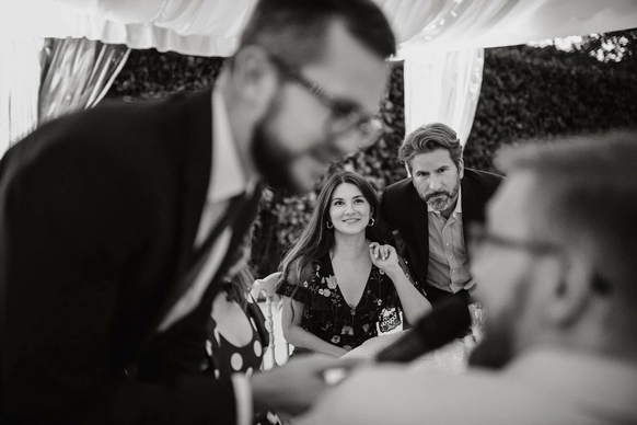 Меня выбирают активные, самодостаточные люди с хорошим чувством юмора. Те, кто любит как спокойные вечера дома с сериалом и настолками, так и не прочь попить винишка в весёлой компании с друзьями. Поэтому я часто веду свадьбы для ребят из IT и банковской сферы. Корпоративные клиенты в '23 году: Tinkoff, VK, PepsiCo, Geely Motors, Skoltech, Bridgestone, Rock Flow Dynamics, FM Logistic, Профилум