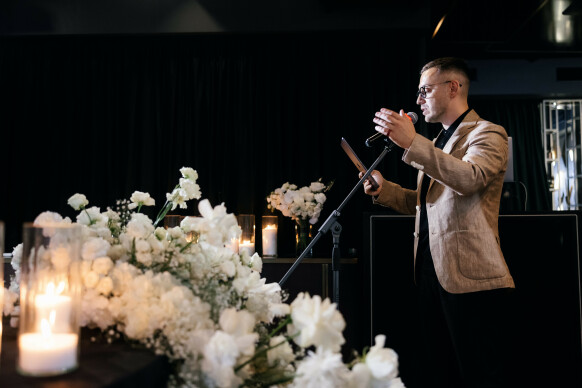 Интеллигентно и с юмором. #Любимыеформаты: - фуршетные и гибридные мероприятия ( высокий навык ведения без прямого взаимодействия с гостями); - мероприятия с минимальным количеством гостей (вел 6 часов свадьбу без гостей); - мероприятия без конкурсов (хорошо развит формат общения и импровизации); - мероприятия с персональным контентом ( большой опыт создания сложных проектов и как ведущий, и как сценарист); - мероприятия для важных лиц (имею врожденный фильтр и опыт работы в премиум сегменте); - мероприятия для своих (коллеги очень часто на свои мероприятия зовут меня); - бизнес-конференции, форумы (большой опыт проведение крупнейших событий как офлайн, так и онлайн); - юмористические концерты (регулярно веду стендап концерты и импров вечера); - иногда классический формат (ну, а как без него). #неведу: детские праздник; школьные выпускные; мероприятия с активными конкурсами; вечеринки; протокольные мероприятия.