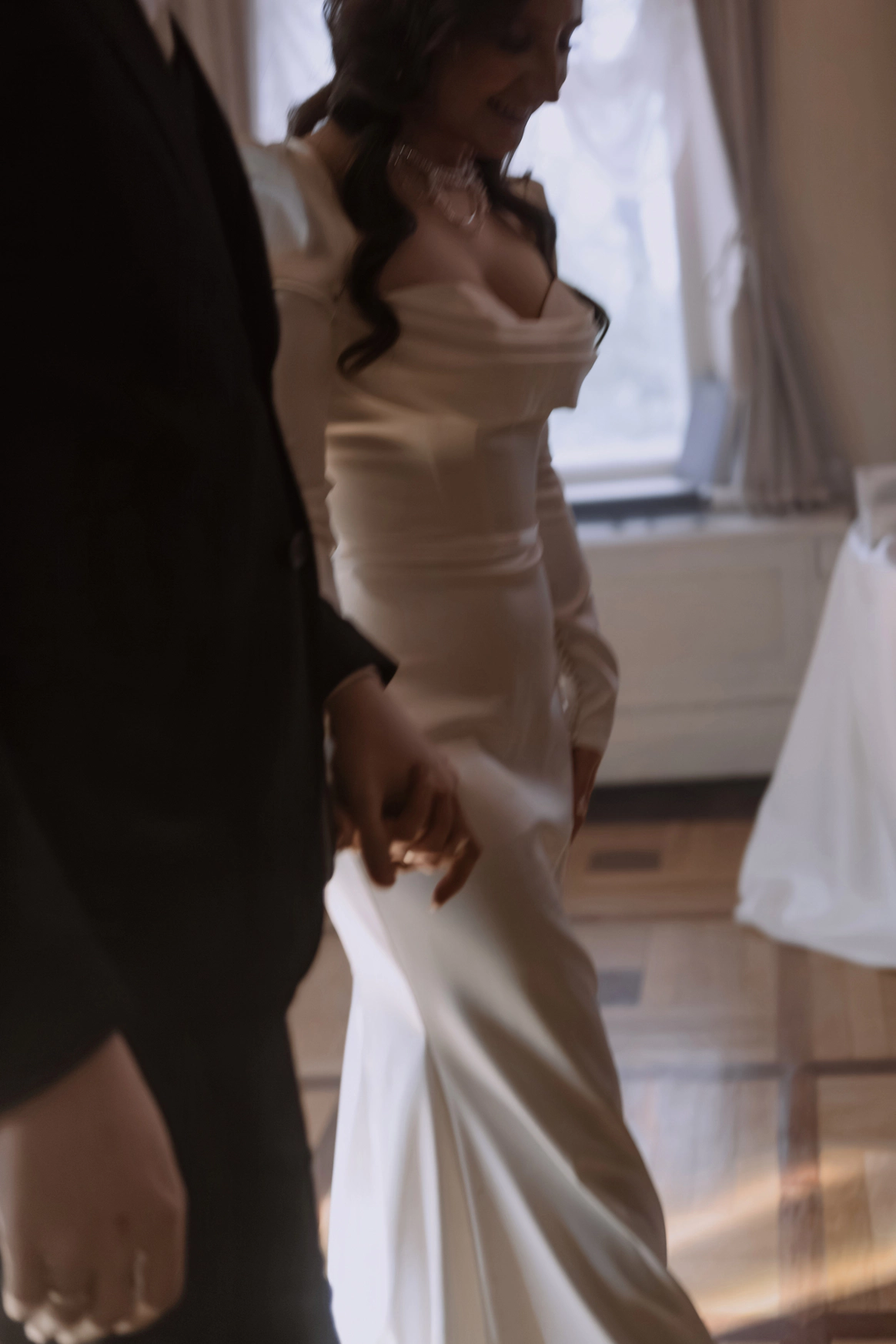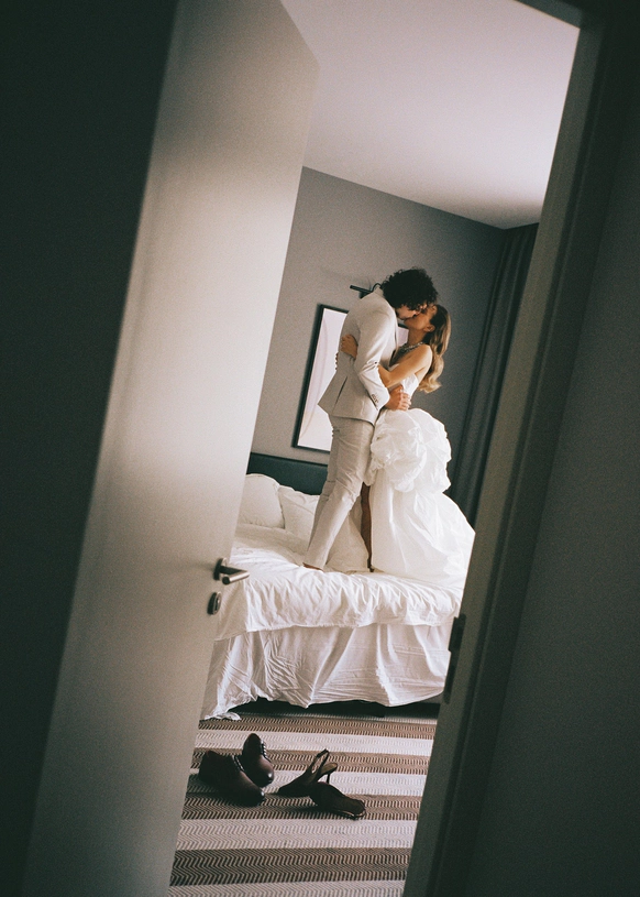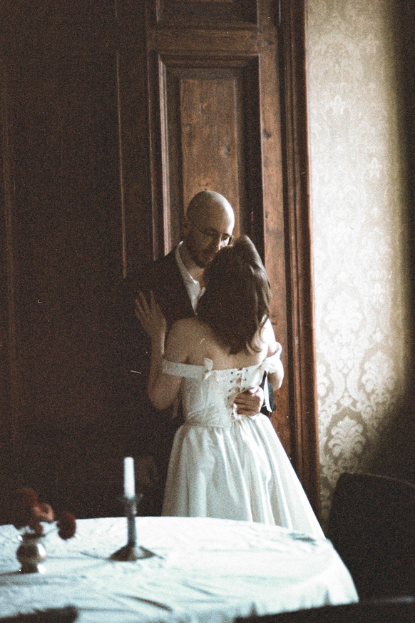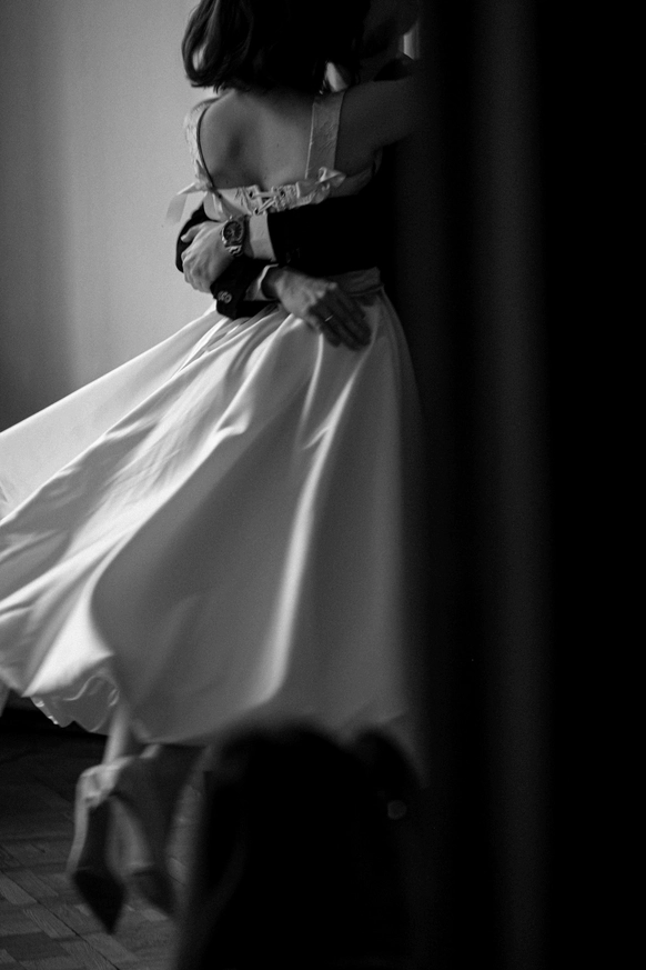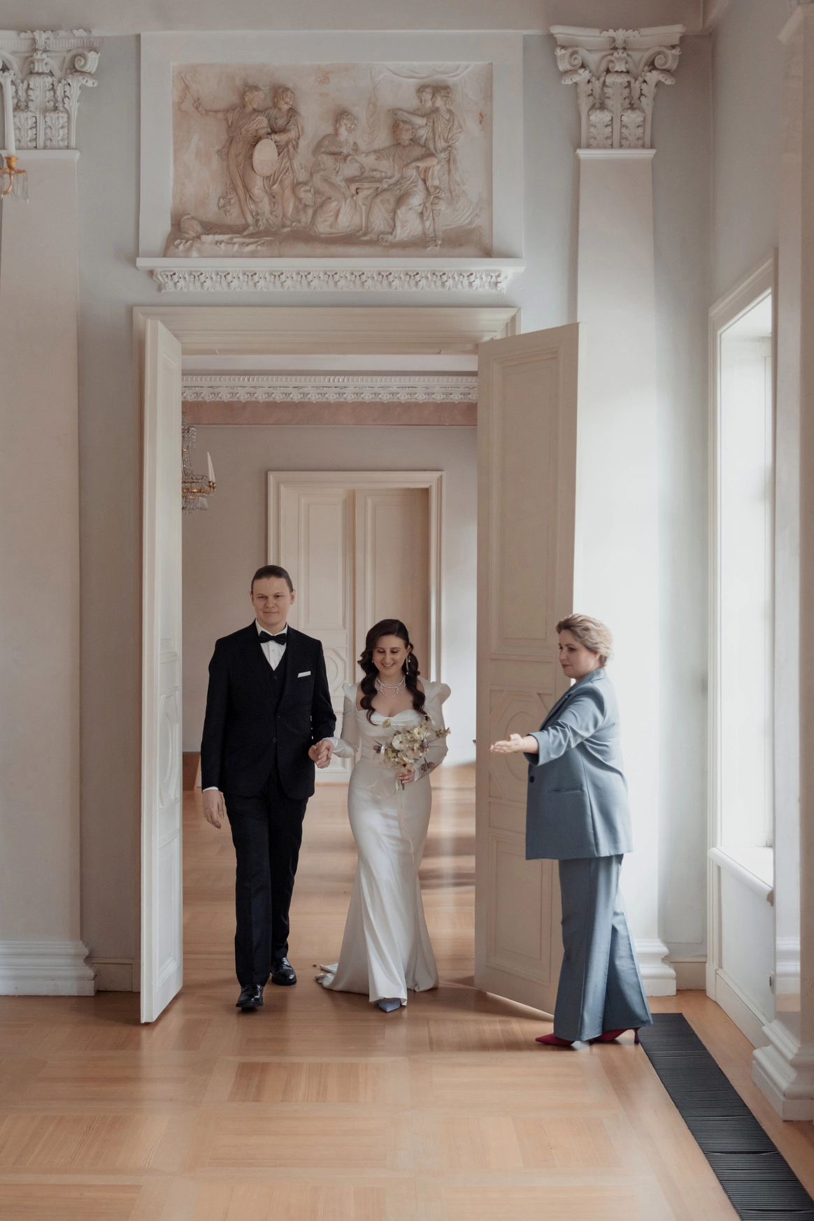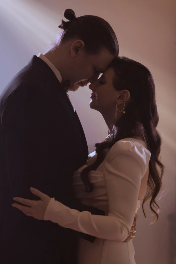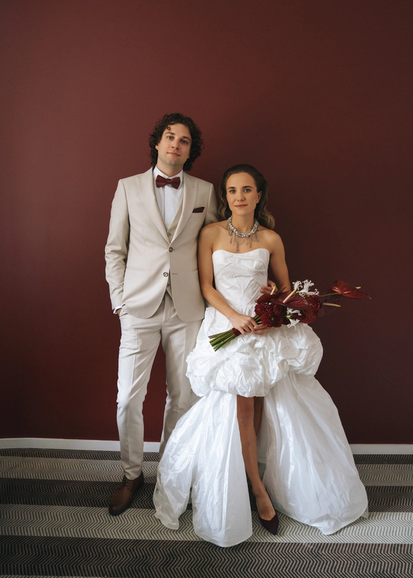 Небольшая камерная свадьба, с четко продуманными деталями начиная с утра жениха и невесты в лаконичном номере отеля Marco Polo, фотосессией в эстетичной квартире начала XX и заканчивая ужином в ресторане, который находится в особняке XIX века.