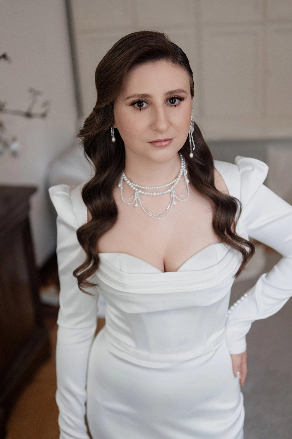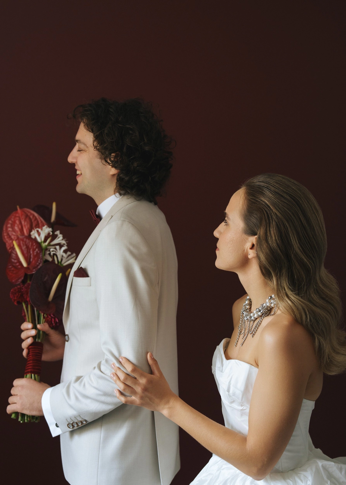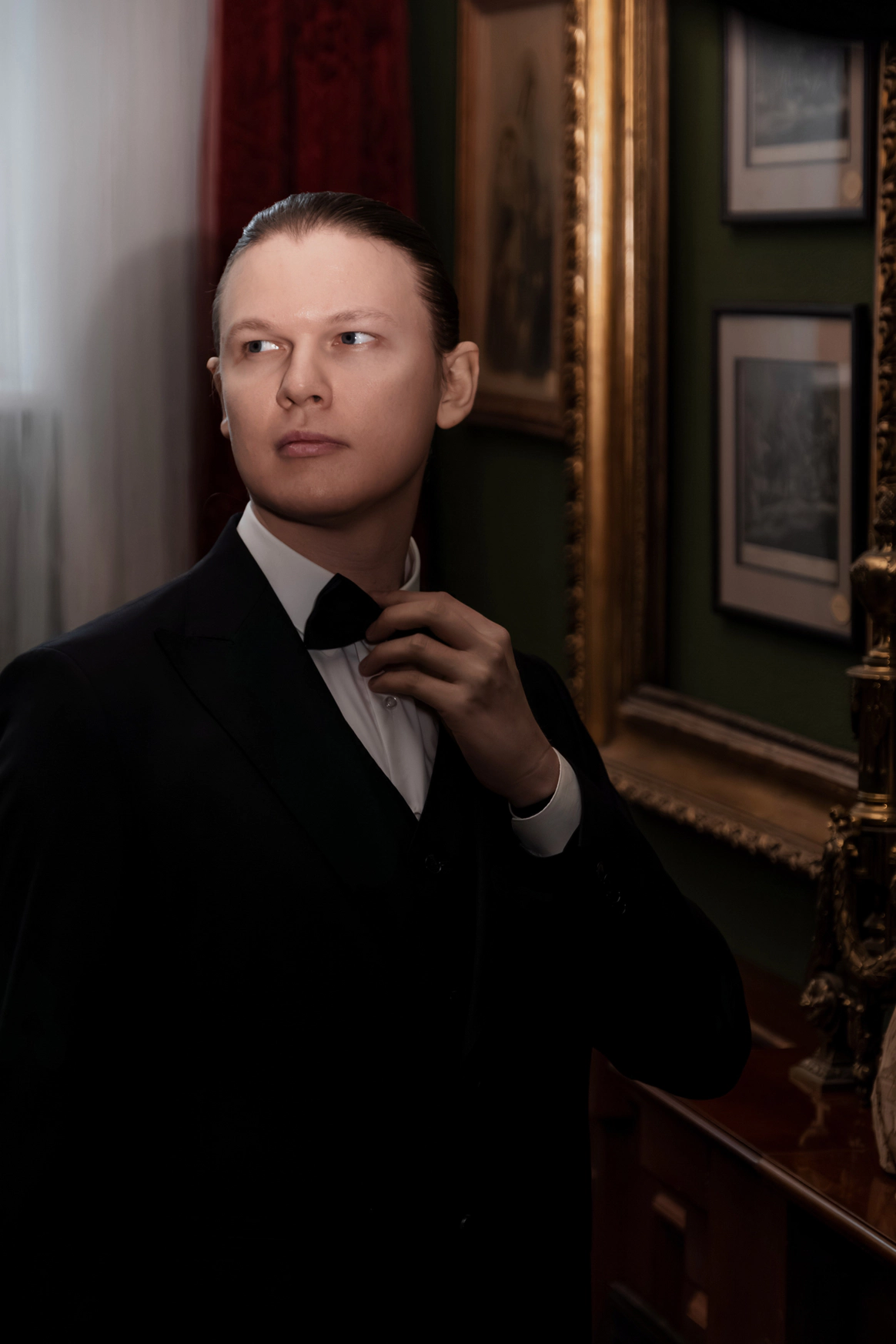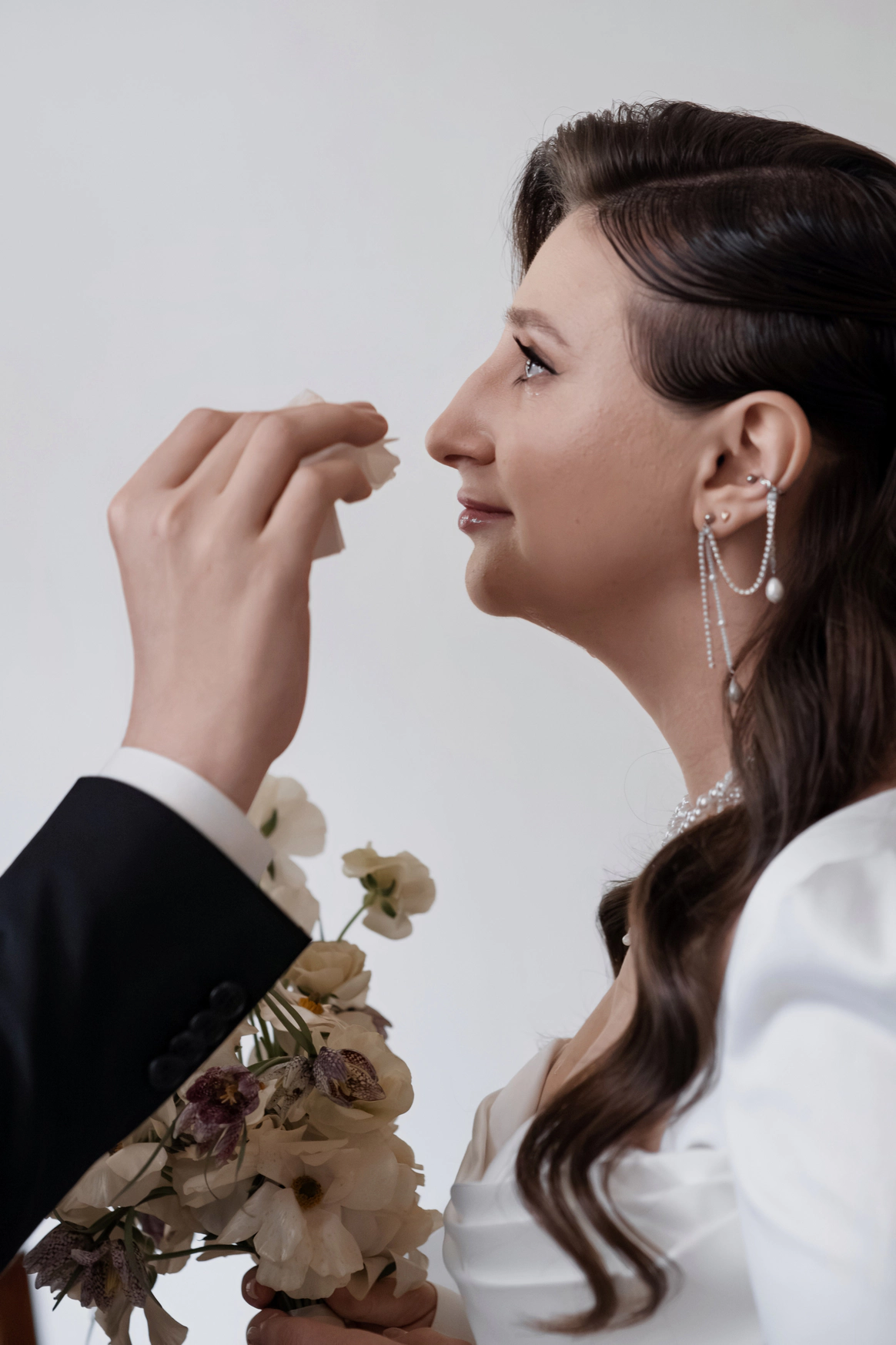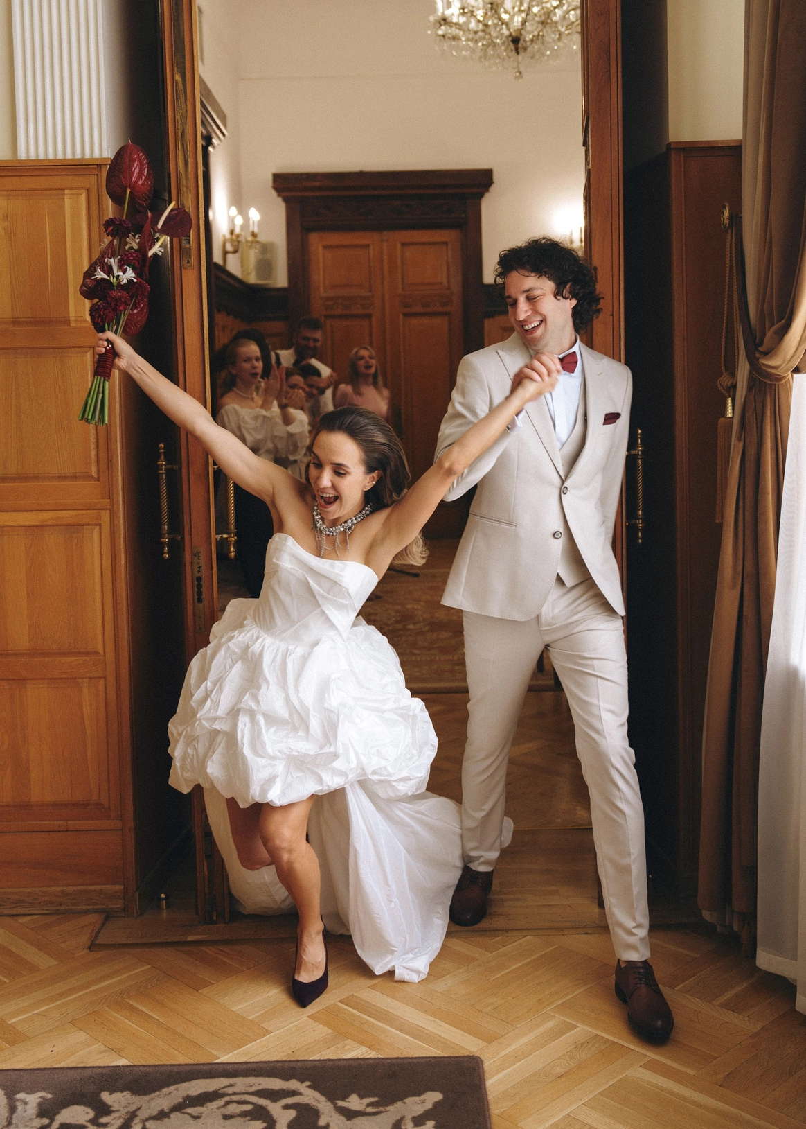 Небольшая камерная свадьба, с четко продуманными деталями начиная с утра жениха и невесты в лаконичном номере отеля Marco Polo, фотосессией в эстетичной квартире начала XX и заканчивая ужином в ресторане, который находится в особняке XIX века.