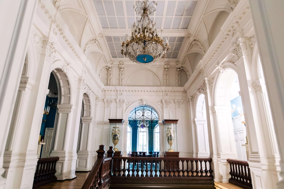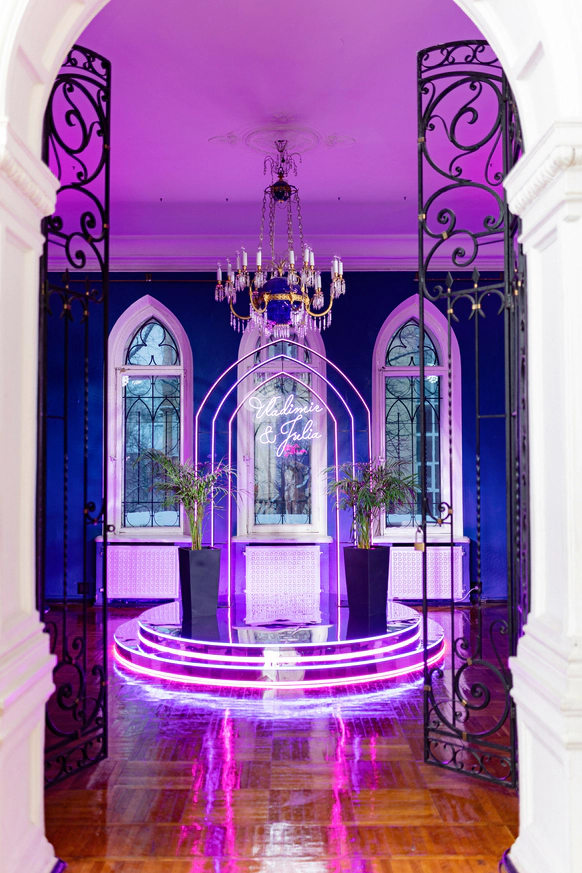 Особняк в Гранатном переулке, более известный как «Дом архитектора», был построен в 1896 году для Анны-Луизы Леман – супруги почетного гражданина, банкира Роберта Лемана. Готический стиль и аутентичное внутреннее убранство здания — прекрасная декорация как для классической, так и для концептуальной и современной свадьбы. В особняке «Леман» есть просторный банкетный зал с белоснежными стенами, изысканными люстрами, колоннами в барельефах и витражом. Интерьер зала позволяет воссоздать любую креативную задумку. На первом этаже также расположена просторная белая гостиная со старинным камином и роскошной лепниной на стенах и потолке, объединенная с более камерной розовой гостиной. Они подойдут для небольших уютных мероприятий или фуршета рядом с большим банкетным залом. Украшение особняка – сохранившаяся деревянная лестница, которая ведет на второй этаж и служит местом для фотоссессии и свадебной церемонии. На втором этаже в арочной галерее находится синяя гостиная с белыми колоннами и антикварными канделябрами. Безукоризненную красоту готического интерьера синей гостиной дополняют три стрельчатых окна. На втором этаже также расположен большой концертный зал, интерьер которого выдержан в классическом стиле: белые потолки с лепниной, балюстрада с колоннами над линией окон и большие скульптурные рельефы с изображением древнего римского города — главная особенность зала. Кинозал рассчитан на 150 человек и расположен на третьем этаже особняка. Он объединен с выставочным залом, имеет стационарную сцену, оснащен удобными мягкими креслами, большим экраном, комплектом мультимедиа и звукового оборудования. В новой части особняка расположен выставочный зал, рассчитанный на 500 человек. Он был открыт после реконструкции в 2013 году и представляет собой просторную, светлую площадку со сценой и потолочным освещением. Зал не имеет внутренних колонн и перегородок, что легко позволяет размещать стенды и крупногабаритный декор, а также зонировать пространство.
