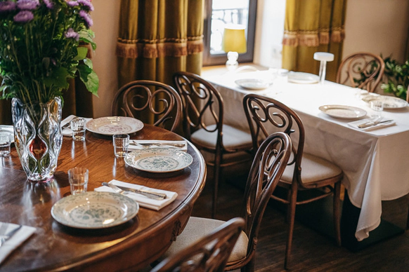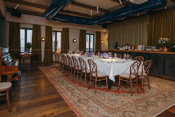 Богемная Квартира в самом сердце Москвы, на Патриарших прудах - уникальное атмосферное пространство для проведения особых событий: камерных свадебных ужинов и семейных торжеств. Праздники, проведенные здесь, остаются в памяти надолго, ведь так приятно собраться за большим столом с самыми близкими и насладиться общением в камерной обстановке. Квартира обладает особенной душевной атмосферой, чувствуешь себя как будто в гостях у старых друзей. Для праздничного меню можно выбрать блюда современной грузинской кухни из ресторана MAMA TUTA или легендарные итальянские хиты из ресторана Maritozzo, а сомелье поможет подобрать идеальное винное сопровождение к ужину. Гостеприимство чувствуется во всех мелочах – менеджеры ресторана помогут в организации любой детали праздника – от цветочного украшения стола до приглашения музыкантов.