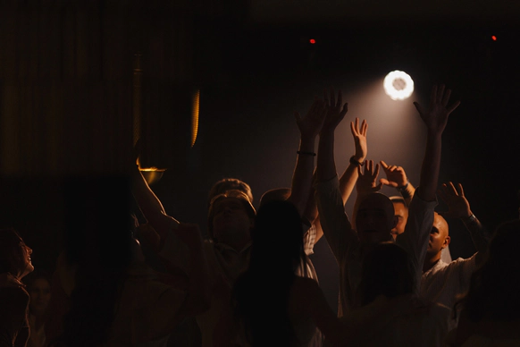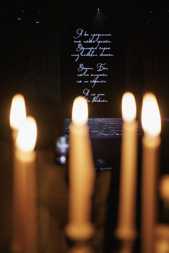 Впервые в истории нам удалось договориться об аренде на ночь для монтажа. Это позволило полностью трансформировать интерьер и зашить весь периметр зала блэкаутом, создав сценографию, необходимую для реализации магической концепции (по режиссёрскому замыслу нам было необходимо создать рассветный свет и туман).
