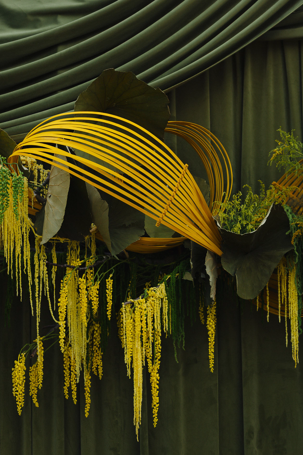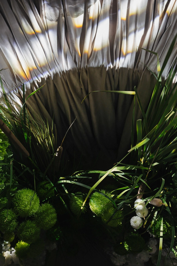 Камыш и рогоз - характерные растения берегов местной реки, стали главным визуальным образом свадьбы. Они символизировали место встречи пары и создавали связь с природным ландшафтом Самбека.