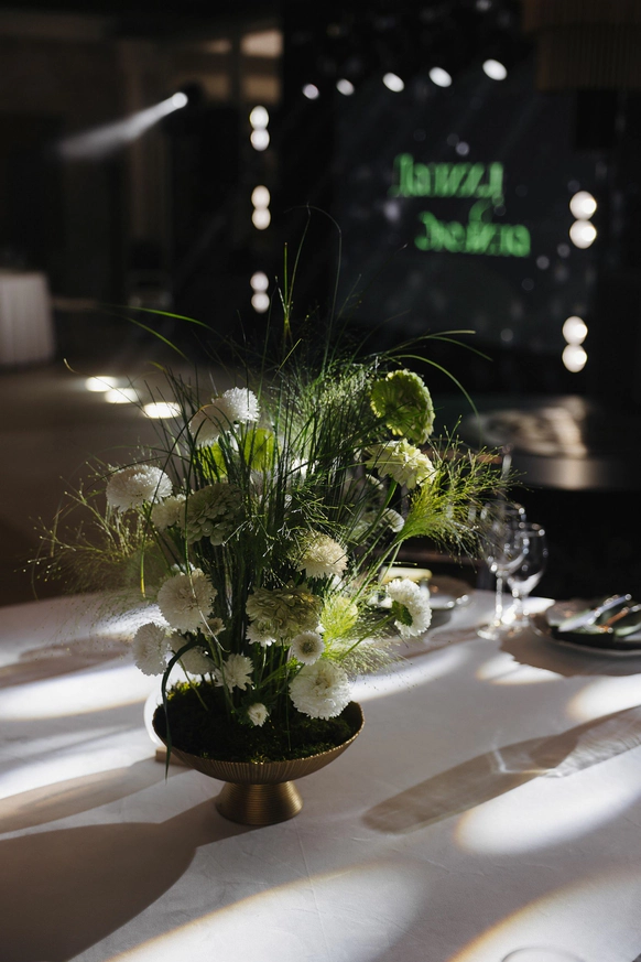 Пространство свадьбы было выстроено как единая композиция, где флористика, декор, свет и атмосфера подчинены одной идее и усиливают друг друга.