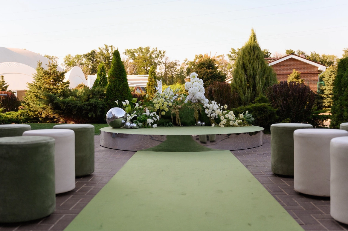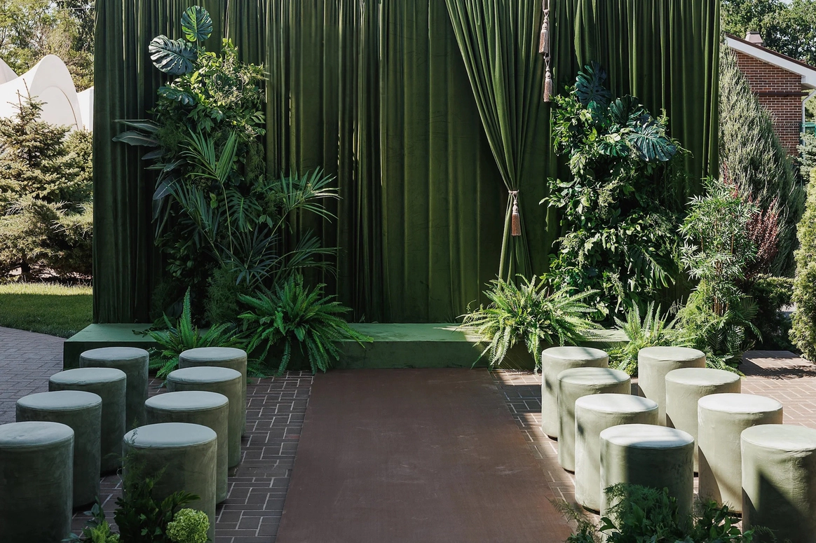 Особенностью проекта была сложная работа с архитектурой для создания зоны церемонии.