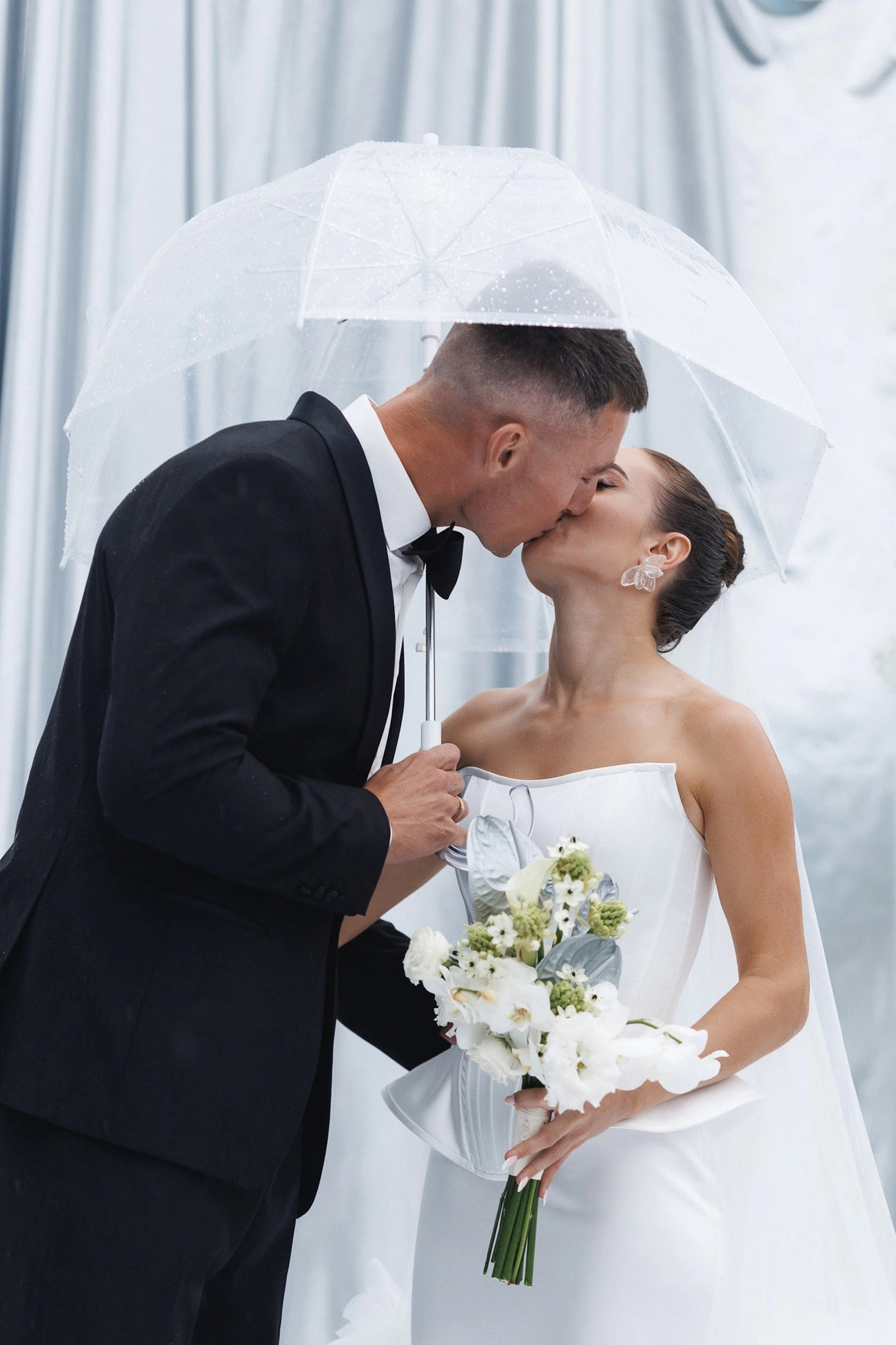 А дождь, шедший на свадьбе, усилил идею.