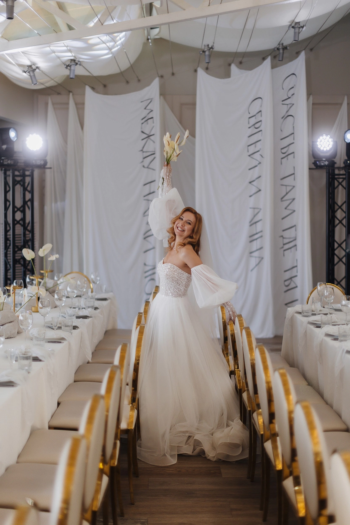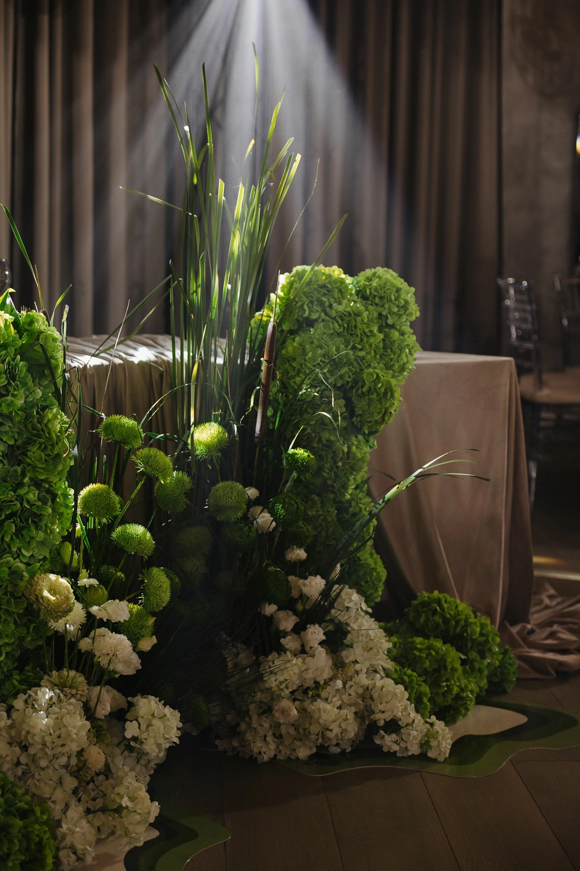 В результате проект стал не просто оформлением свадьбы, а сценографией личной истории пары - истории, начавшейся на берегу реки среди тихого шелеста камыша.