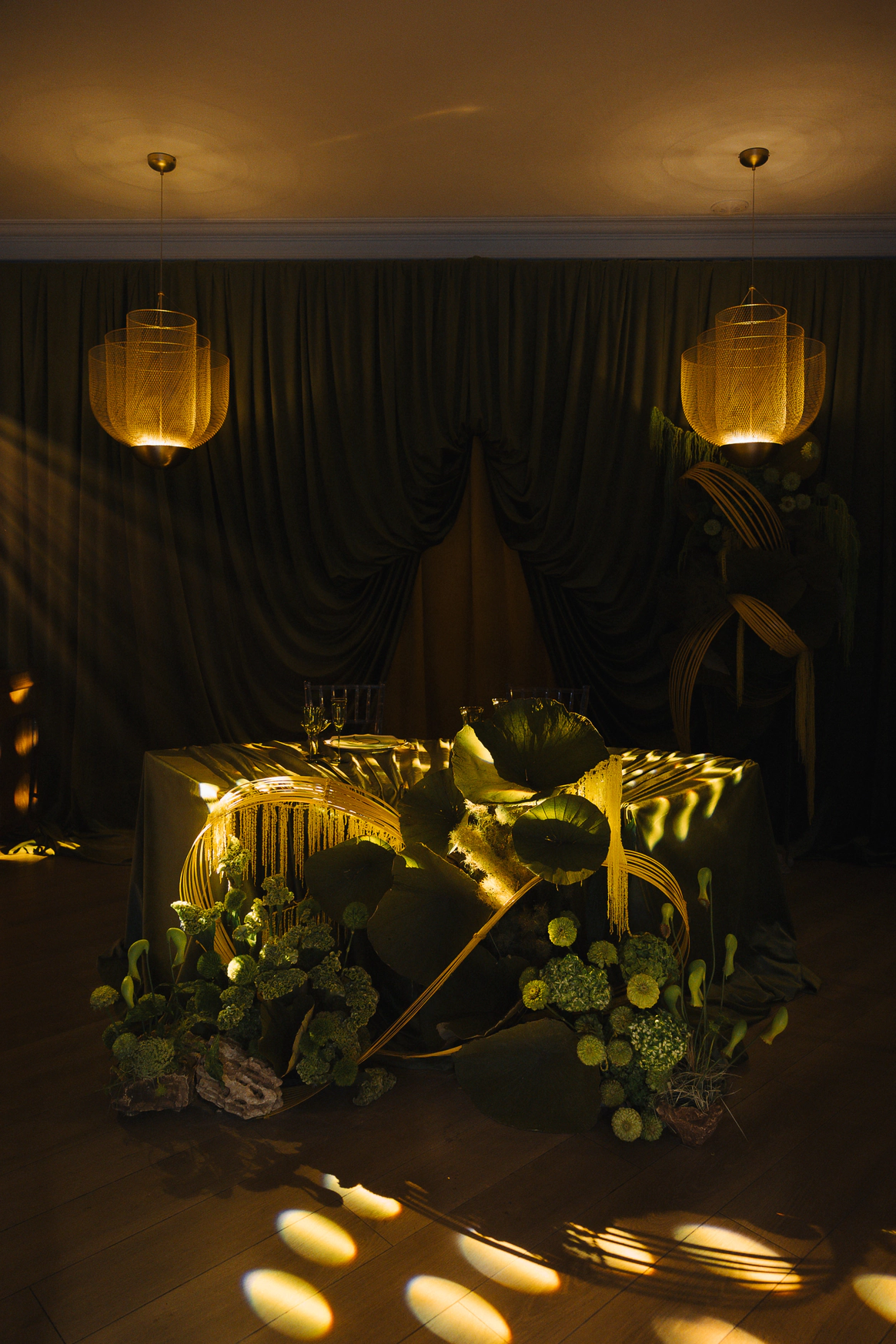 Благодаря этим решениям и дипломатии, мы переосмыслили привычный банкетный зал и превратили его в атмосферный "сад лотосов", где архитектура, свет и флористика работали в тандеме.