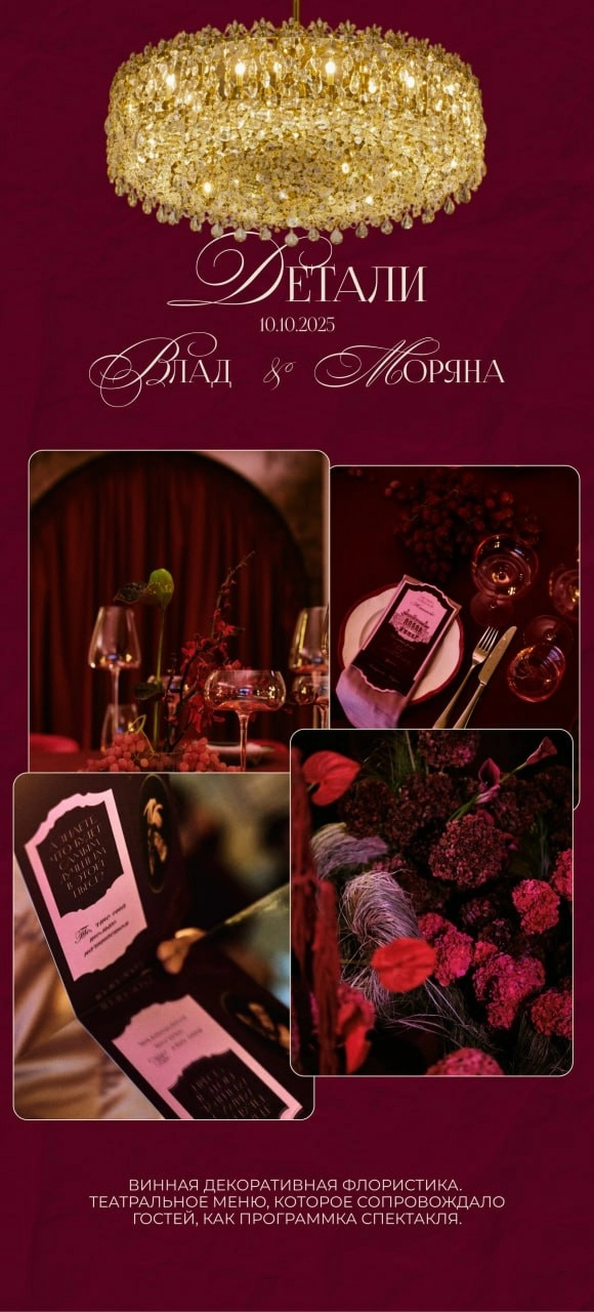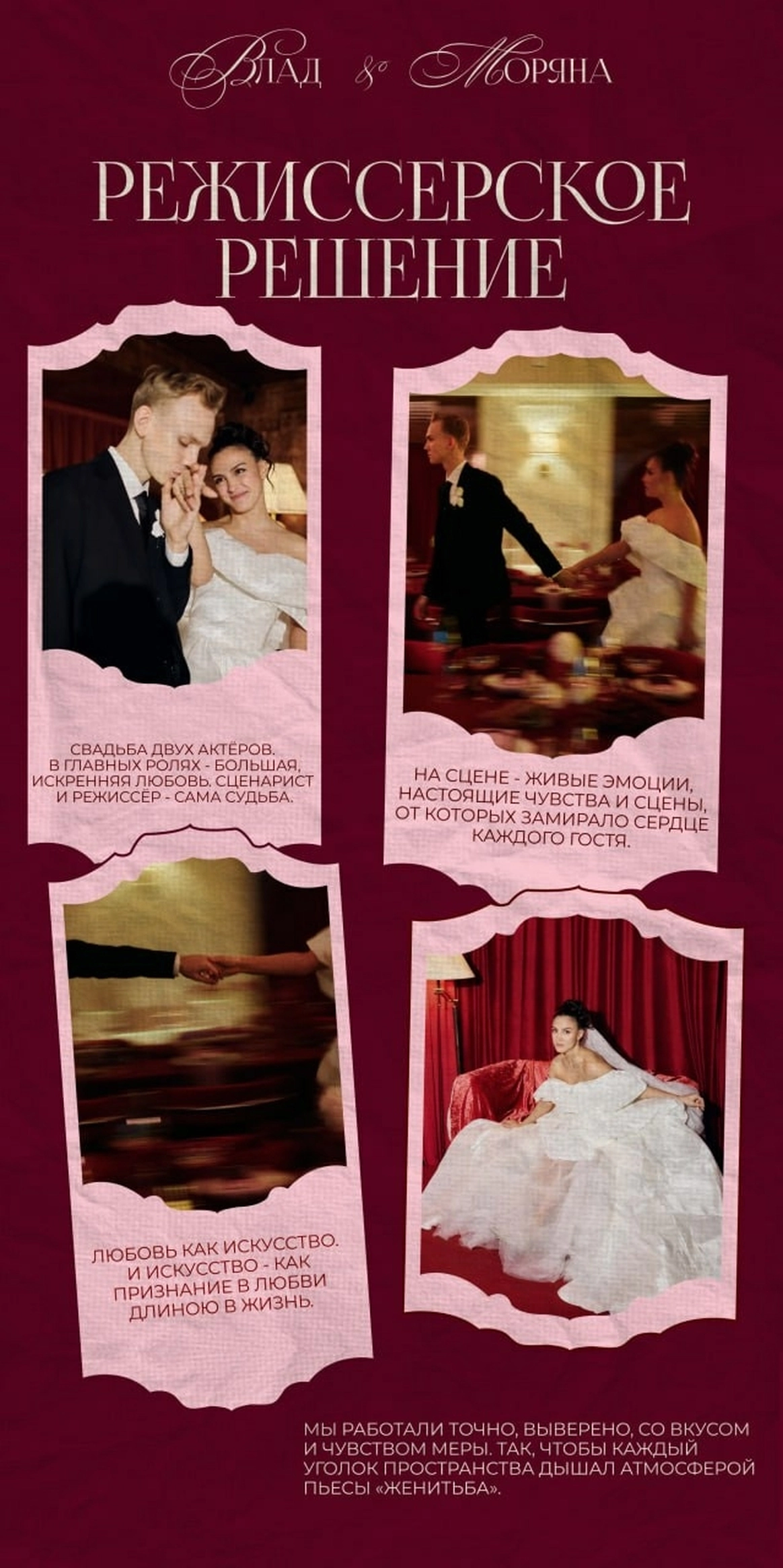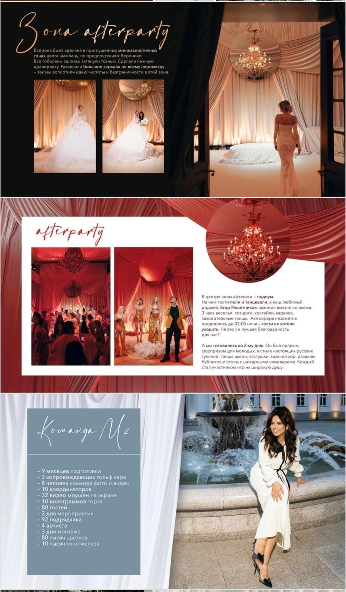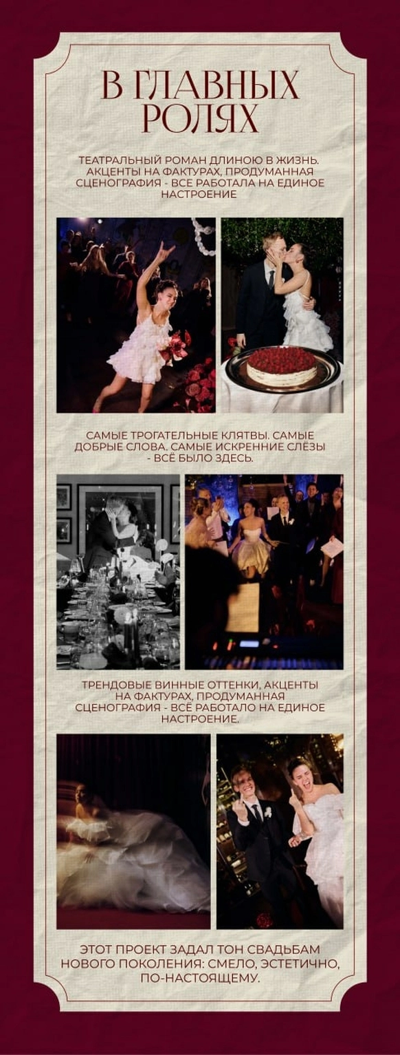 M2EVENTS AGENCY — агентство для тех, кто ценит высокий стиль, безупречный сервис и события, продуманные до мельчайших деталей. Мы создаём мероприятия с характером и смыслом, где каждая деталь становится частью общей эстетики. Сегодня одним из ключевых направлений агентства активно развивается wedding-сегмент, в рамках которого команда создаёт концептуальные и тщательно продуманные свадебные проекты. В своей работе мы объединяем не просто инструменты, а историю, глубину и тонкое чувствование клиента. Мы выстраиваем живое взаимодействие, погружаемся в контекст и на основе разных форм — от культурных кодов до возможностей искусственного интеллекта — создаём актуальный emotion-контент, интегрируем современные арт-объекты и формируем уникальные сценарии взаимодействия с гостями, где каждая деталь наполнена смыслом и усиливает общее впечатление. Уже более семи лет команда M2 известна высоким уровнем консьерж-сервиса, сопровождая клиентов в проектах разного масштаба.