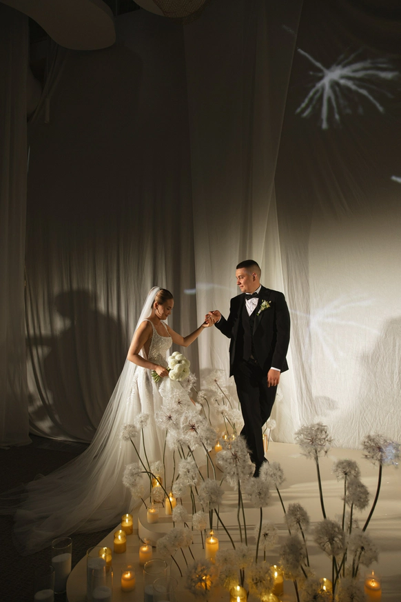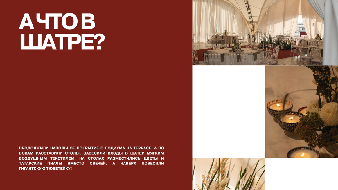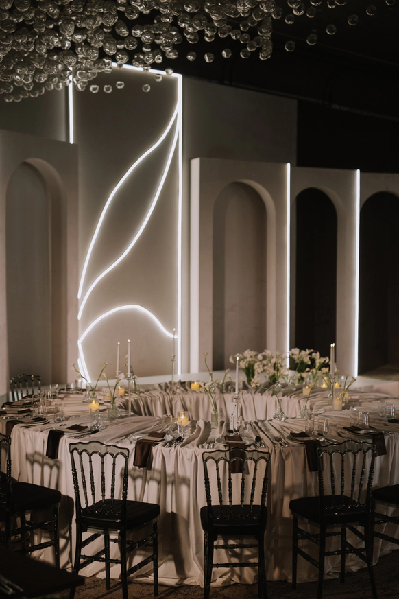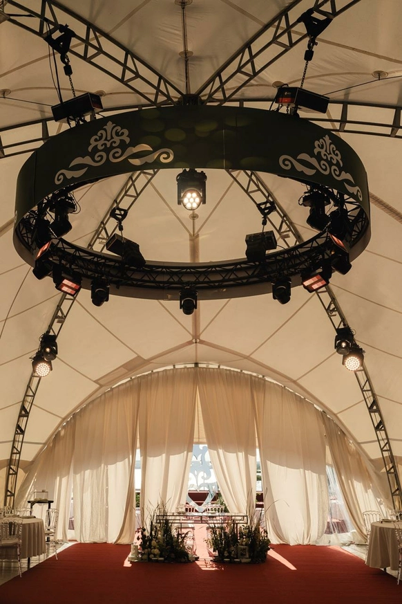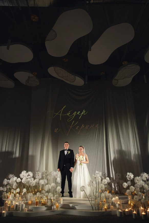 Этот декор - современное прочтение татарской свадьбы, где традиции переплетаются с эстетикой минимализма и элегантности.