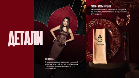 30 лет - возраст силы, амбиций и уже осознанного пути. Мужской юбилей в концепции «TATAR CODE» стал отражением характера именинника - уважение к корням, верность традициям и уверенный взгляд в будущее.