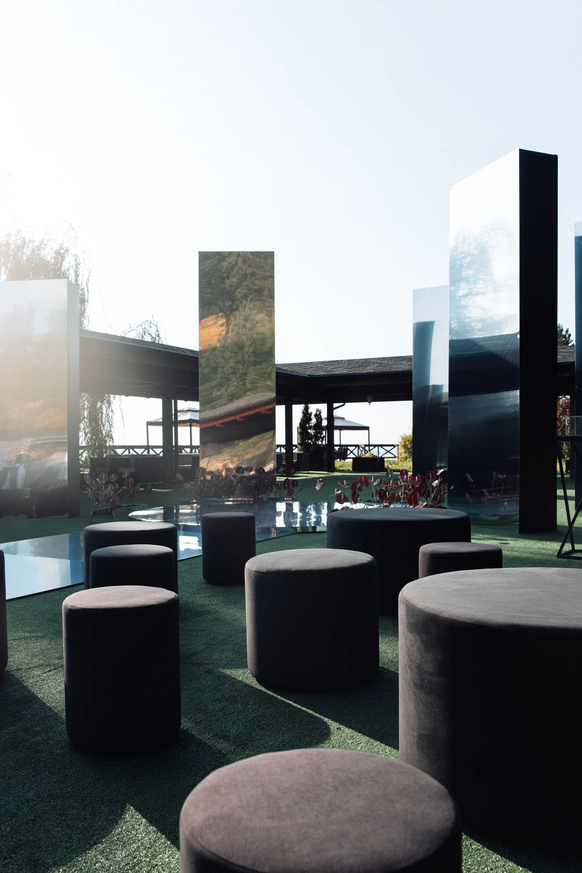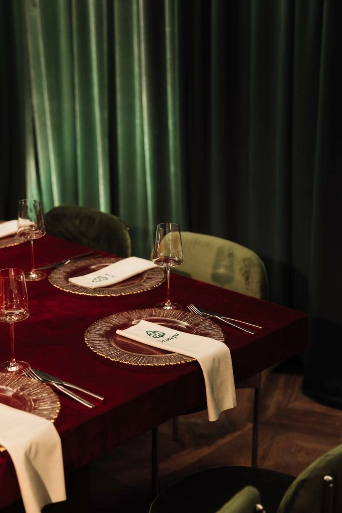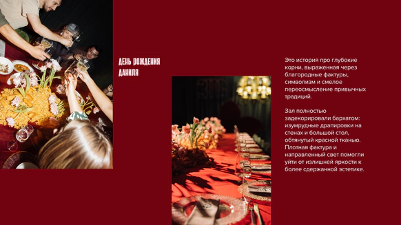 Пространство было оформлено в изумрудных и бордовых оттенках - глубоких, благородных, символизирующих достаток, мудрость и внутренний стержень. Атмосфера сочетала национальные мотивы и современный стиль, создавая ощущение статуса и тепла одновременно.