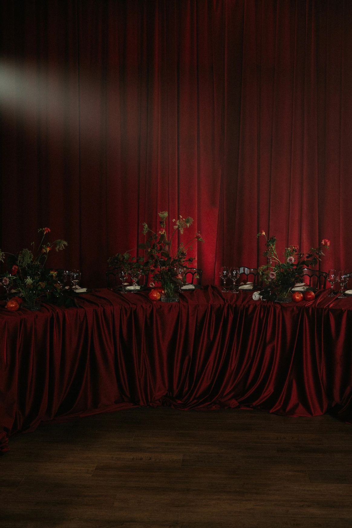 Декор свадьбы выполнен в благородной красно - зеленой палитре, отражающей глубину традиций и национальный колорит татарской культуры. Пространство оформлено с акцентом на символичность, орнаментальность и естественную красоту.