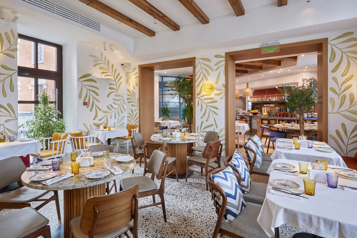 Meraki - атмосферный ресторан Аркадия Новикова с комфортной греческой едой на каждый день. В начале весны свои двери распахнул большой, светлый ресторан Meraki с аутентичным интерьером и оливковыми деревьями. Название проекта несет в себе скрытый, но очень красивый посыл - делать что-то с «мераки» означает вкладывать часть своей души в то, что ты делаешь. Корень этого слова «мерак» можно перевести как - «любовный труд» или «сделанное с удовольствием». Кухню возглавил бренд-шеф Владимир Богожавец, который разработал меню с акцентом на греческую классику и Средиземноморье. Ранее он уже работал у Аркадия Новикова в ресторанах Salon, «5642 Высота», BOLSHOI, «Чайковский», а сейчас руководит греческим рестораном Meraki. В профессиональном портфеле Владимира есть и стажировка в Иордании, где шеф удостоился чести готовить для королевской семьи. Знакомство начинается с выбора мезедес - традиционных греческих закусок, которых в меню более 12 видов: дзадзики на основе греческого йогурта и свежих огурцов, тарамасалата - паста айоли с икрой форели, тирокафтери, тапенада из оливок и др., которые идеально сочетаются с горячими лепешками из печи. Звание визитной карточки ресторана по праву носит большой греческий салат с нежной фетой - идеальный вариант на компанию. Среди горячих блюд и спагетти с морепродуктами в эмульсии на основе чесночного и сливочного масел, и запечённые в печи креветки саганаки в томатном соусе с сыром фета, а также разнообразие кебабов и сувлаки на гриле. Одними из гастрохитов однозначно стали сибас ладолемоно с соте из томатов, зелени, каперсов и оливок каламата, и авторский вариант греческой «лазаньи» - мусака. В качестве десерта - невероятно нежный тре лече - ванильный бисквит, пропитанный тремя видами молока. В коктейльной карте превалируют авторские твисты, отсылающие гостя на берег Эгейского моря: Meraki Sour на основе цитрусового ликера и джина, авторская вариация на джин смэш - Greek Basil с добавлением базилика и пряностей, а также Peach Pearl и Aegean Negroni. Сочетание необычных вкусов, креативная подача, домашние греческие лимонады и настойки, всё это лишь малая доля того, чем готов удивить бар ресторана. Представить себя в солнечной Греции поможет аутентичный интерьер ресторана. Дизайн разрабатывала студия Krivtsova & Redina, отражая в каждой детали уникальную концепцию проекта: лепнина и ручная роспись на стенах, потолки из цельного дерева, картины и тарелки от модных художников (Александр Бирюк, Лера Попова и др.) с мифологическими смыслами, красочный мозаичный пол, много зелени и воздуха. Пространство разделено на несколько залов, что позволяет разместиться как большой компании, так и уединиться вдвоем под оливковым деревом: зона с открытой кухней, чтобы насладиться и вдохновиться работой поваров, зал с грилем, «винный погреб» с приглушенным светом, а также зал с большими арочными окнами, посреди которого расположился остров с атрибутами Греции - олива, корзина с лимонами и глиняный кувшин с вином. Очутиться в уютном ресторане на острове Миконос, насладиться классической греческой кухней, выпить бокал хорошего вина или авторского коктейля в компании друзей или семьи - все это возможно в Meraki.