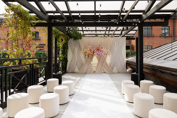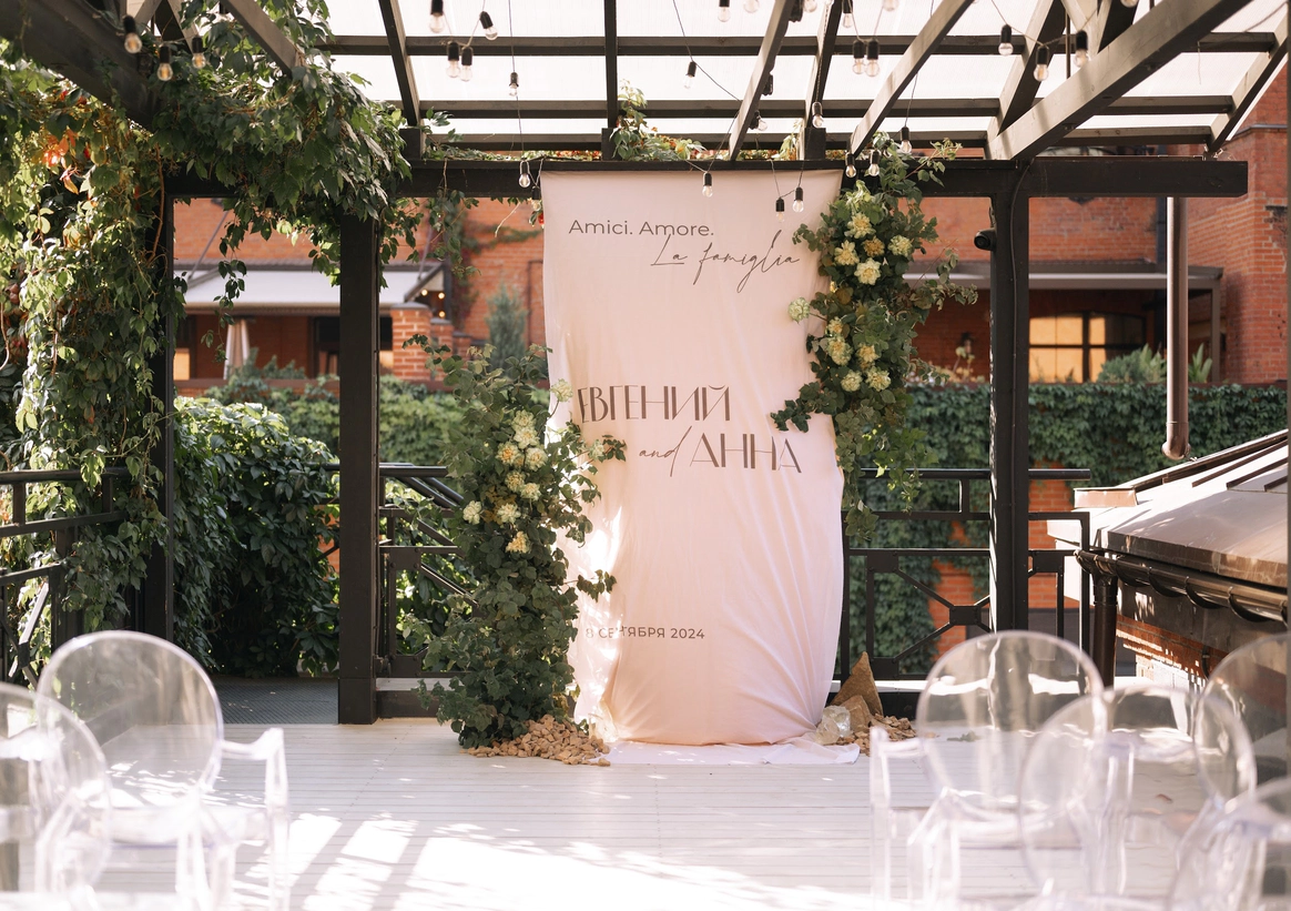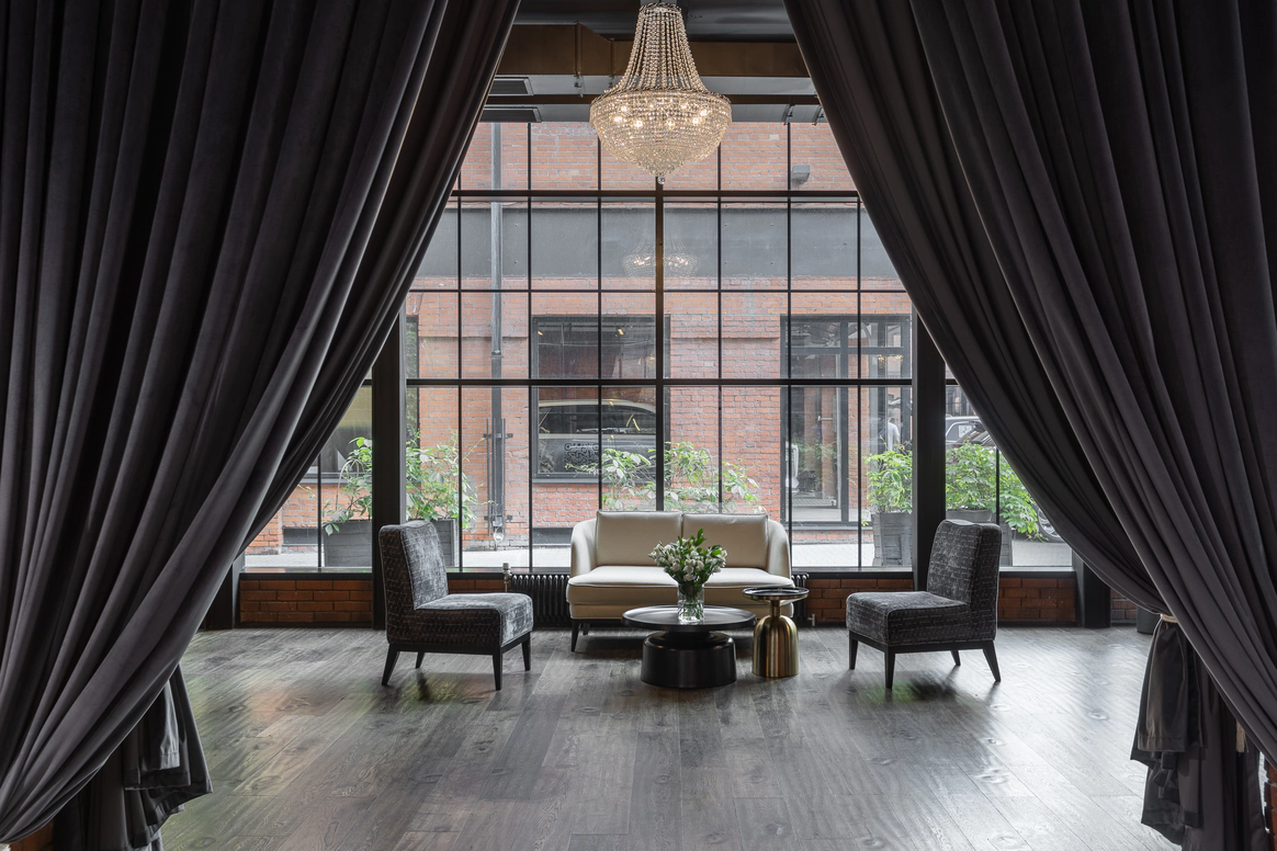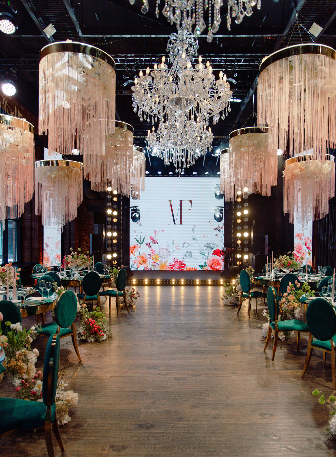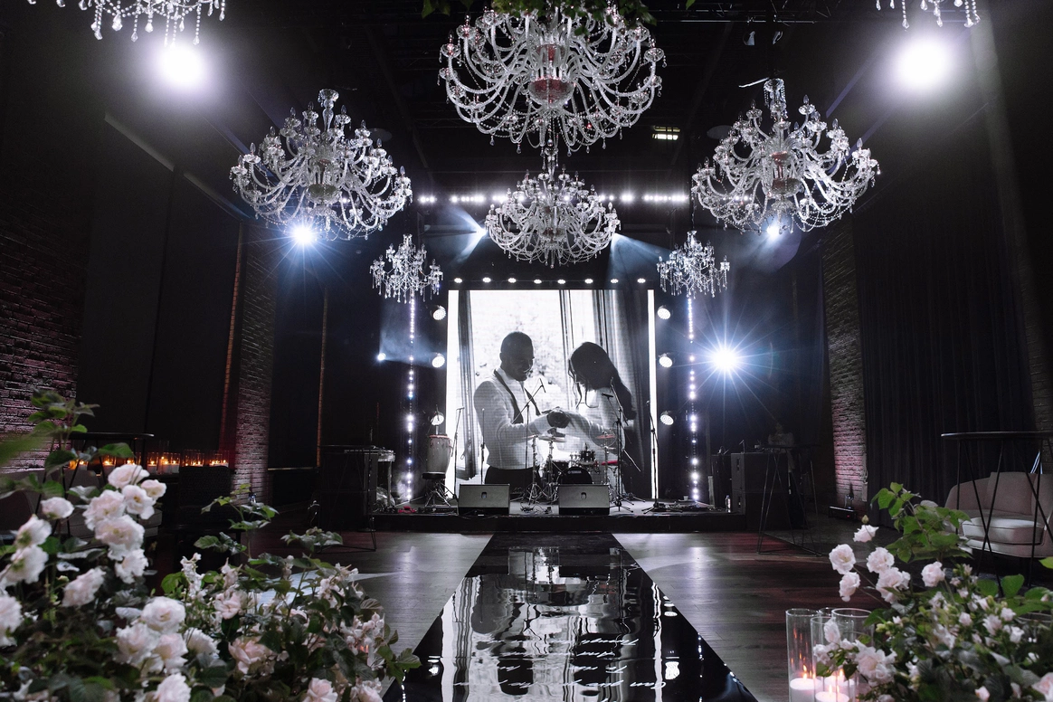 MJ Hall расположен на закрытой территории премиального Loft-квартала Даниловская Мануфактура, где гармонично переплетается архитектурное наследие 19 века и современные дизайнерские решения. Особняк идеально подходит для мероприятий любого формата: свадеб с торжественной церемонией, семейных торжеств, детских праздников, бизнес-конференций, корпоративных вечеров и бизнес-бранчей. 1 этаж вмещает два смежных зала, общей площадью почти 300м2, с панорамным остеклением, каскадом хрустальных люстр , большой барной стойкой и комфортной мягкой мебелью. Плотные бархатные портьеры в высоких кирпичных порталах легко зонируют пространство особняка на 2 зала. Основной зал оснащен центральным четырехметровым светодиодным экраном, профессиональным световым и музыкальным оборудованием, а высота потолка 9 метров дает возможность для выступления воздушных гимнастов. Открытая веранда, утопающая в зелени, располагается на крыше особняка. Скрытая от городского шума, станет идеальным местом для проведения выездной церемонии. Особую романтику и камерность добавляет винтажная гирлянда, теплое свечение которой, летними вечерами создает ни с чем не сравнимую атмосферу.