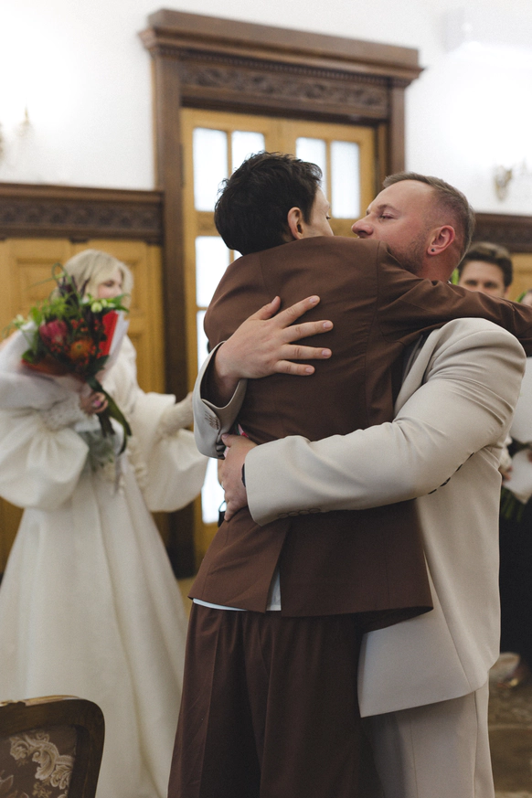 Это была свадьба для двоих, но ни семья, ни друзья обделены не были: близкие приехали в ЗАГС, далее отправились на обед с ребятами. Все смогли поздравить их и быть рядом в день росписи.