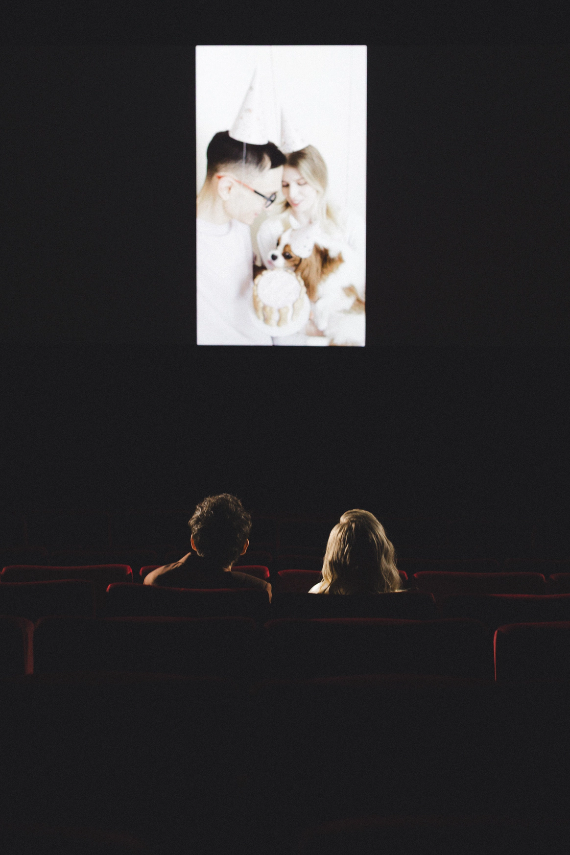 Зато множество уникальных фишек: мы заранее собрали с ребят материалы из их архива, смонтировали и конвертировали под формат кинотеатра ролик, который они впервые увидели только в день свадьбы;