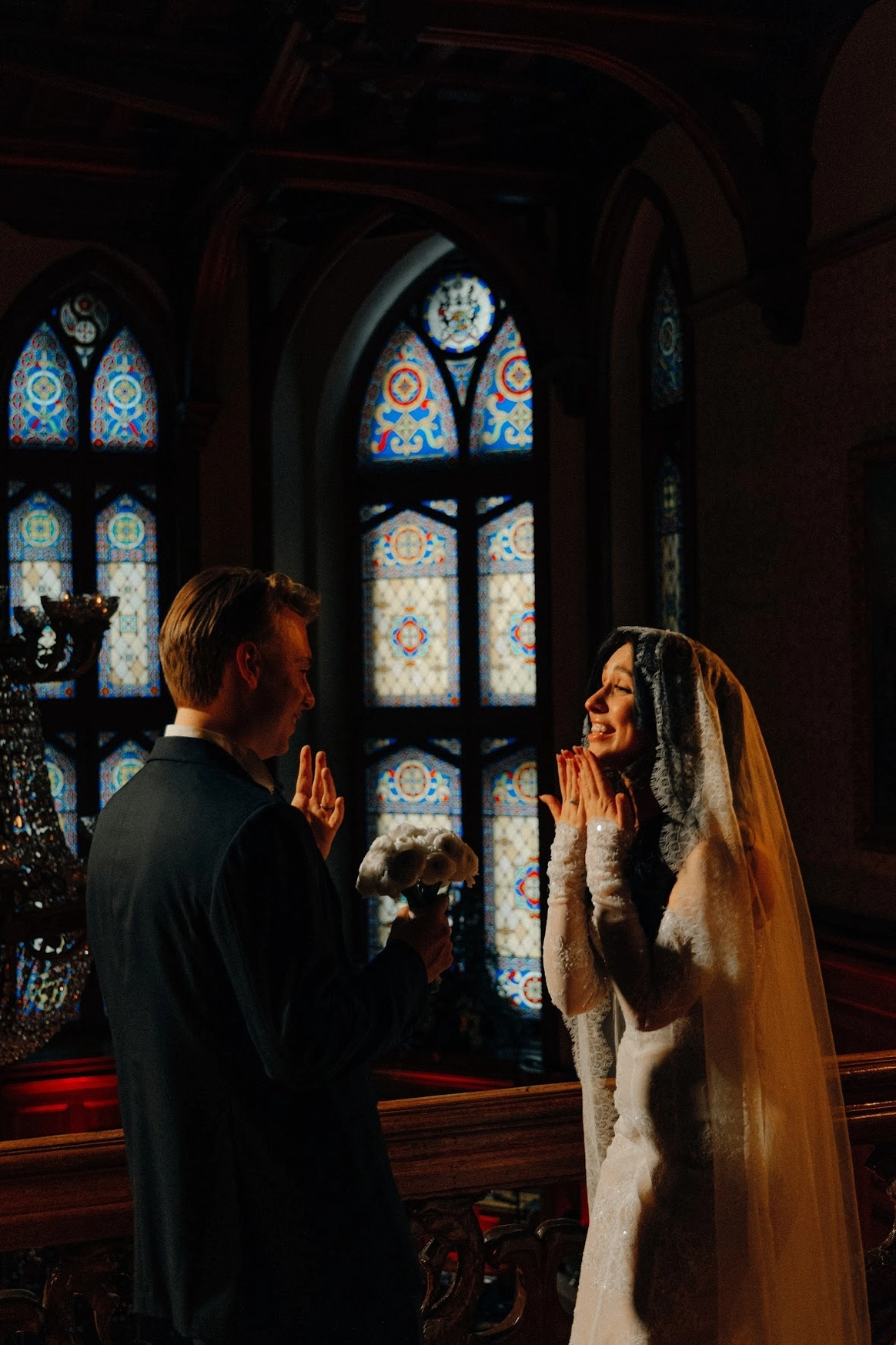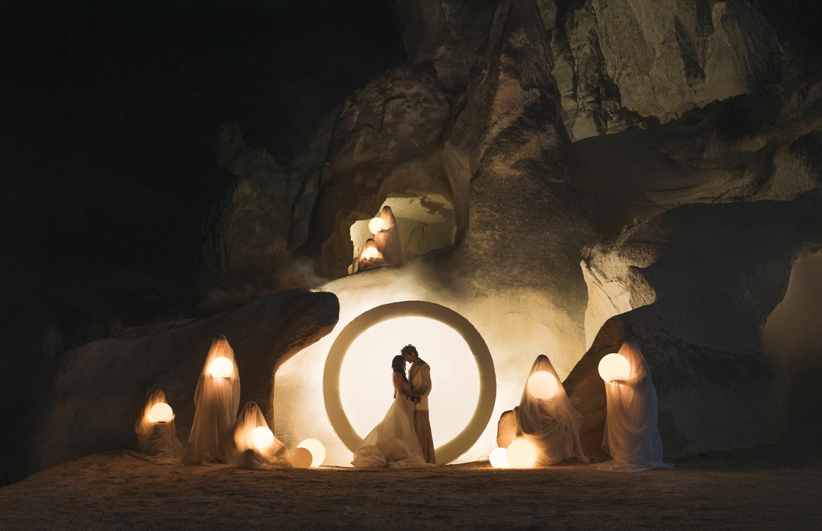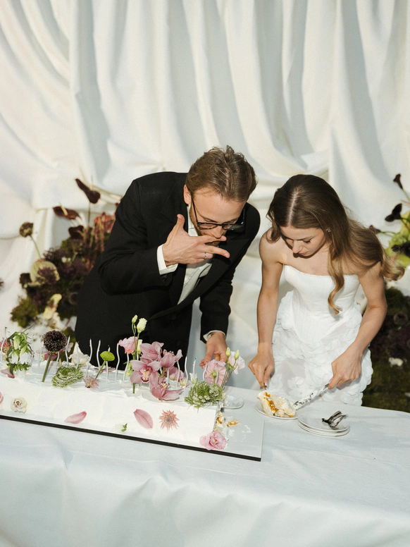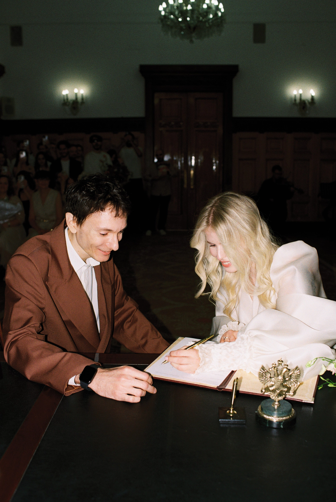 Они познакомились на сцене, поэтому ключевой задачей было превратить свадебный день в художественное высказывание, отражающее их профессию, способ общения с миром и драматургию отношений.