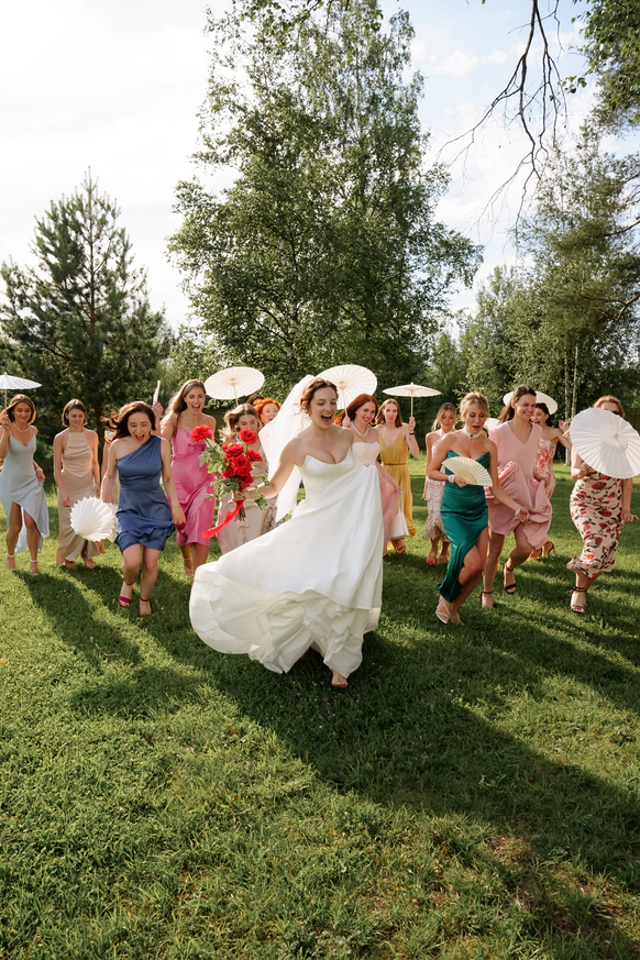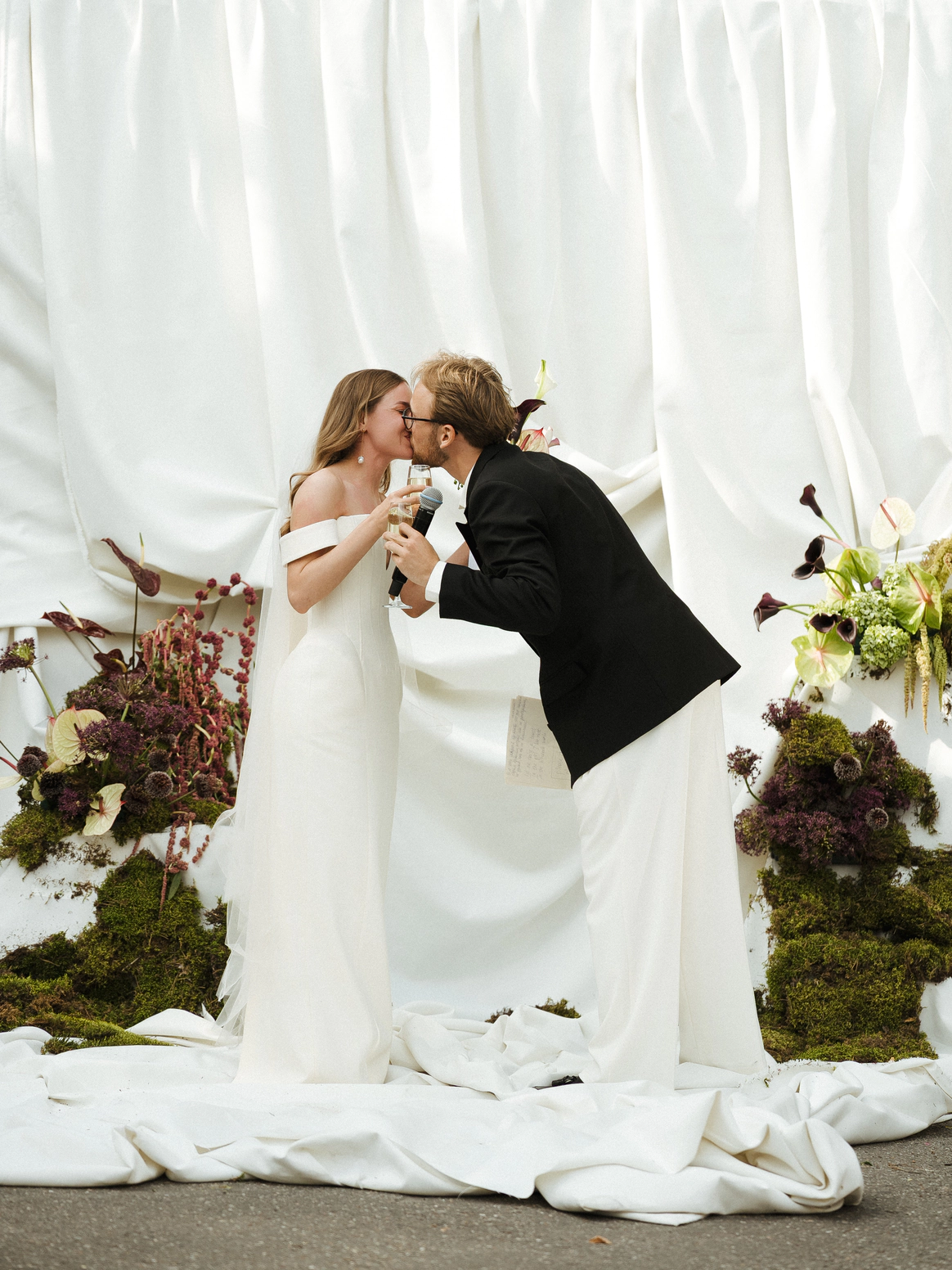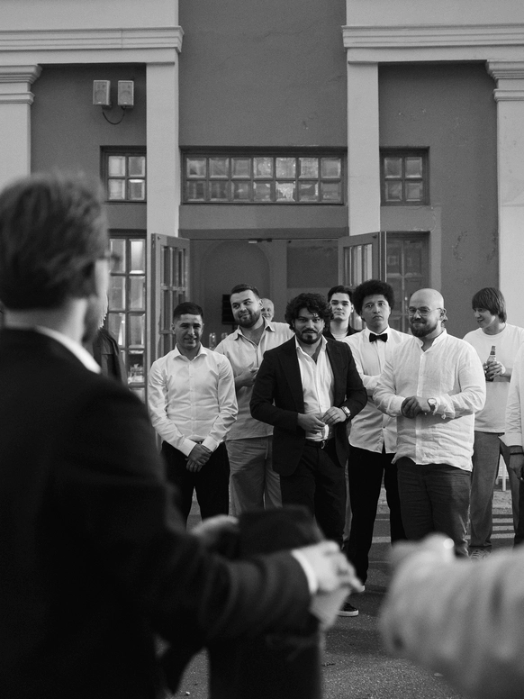 Свадьба была выстроена не вокруг визуальной стилизации, а вокруг опыта проживания — прогулки, наблюдения, взаимодействия с искусством и коллективного создания воспоминаний.