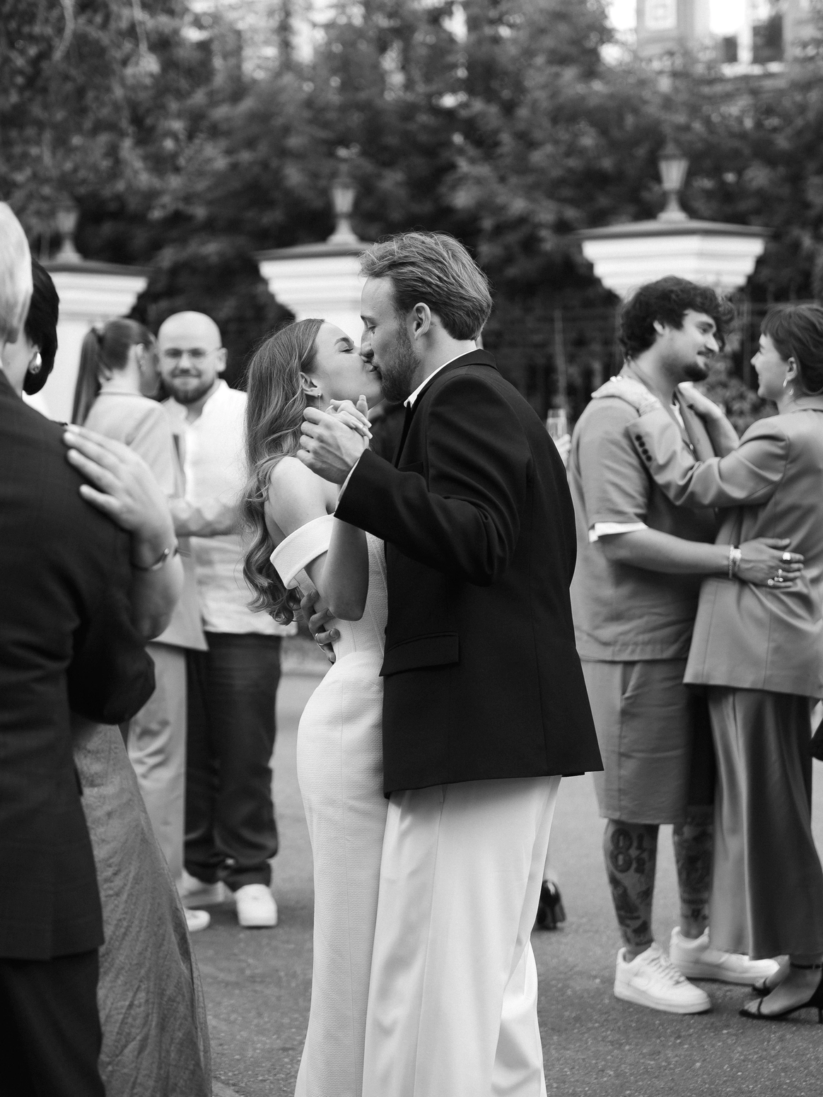 Дресс-код Parisian vibe визуально поддержал атмосферу проекта и объединил гостей в единое эстетическое пространство, благодаря чему свадьба воспринималась как цельный эмоциональный опыт, а не просто событие.