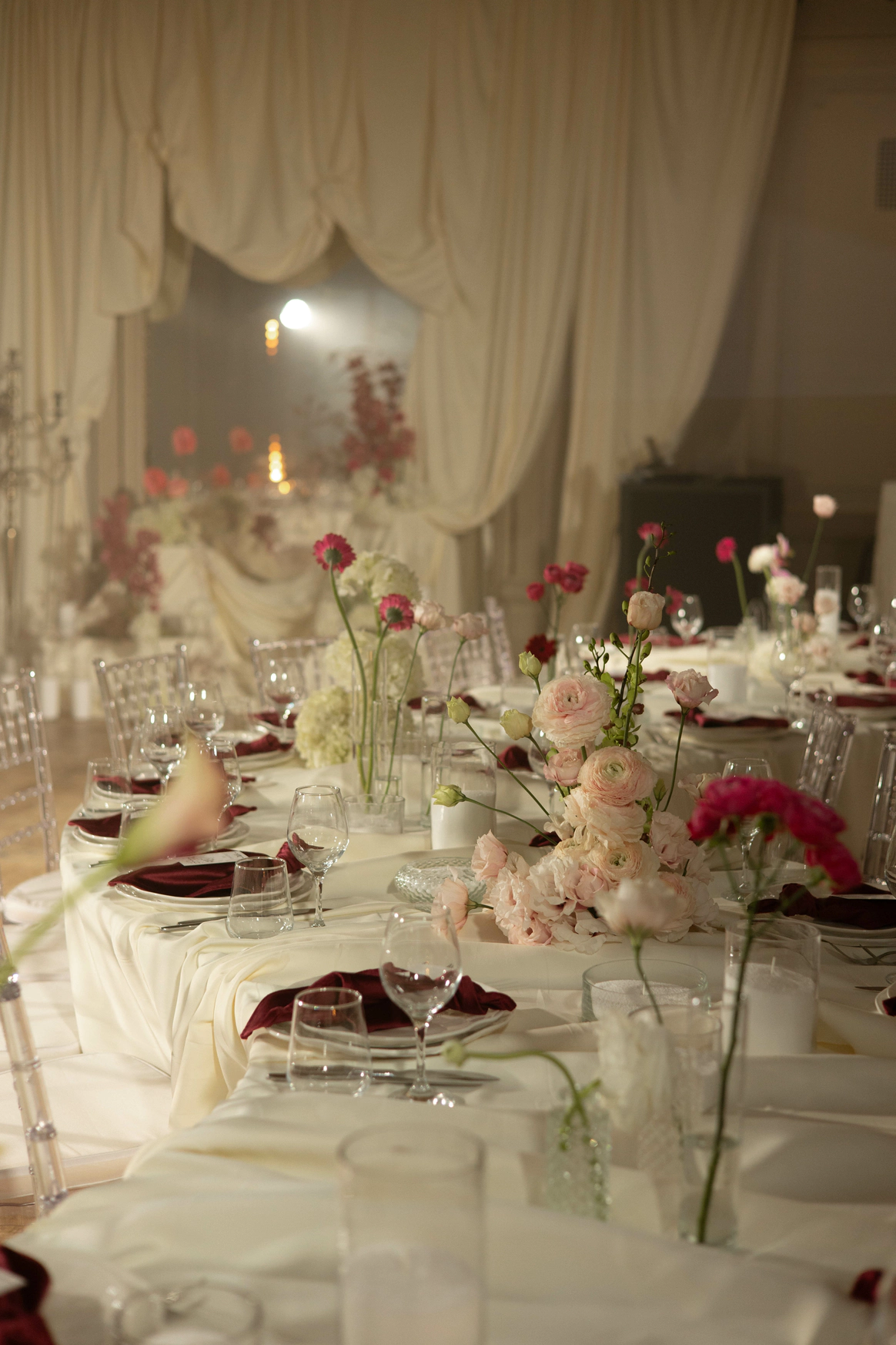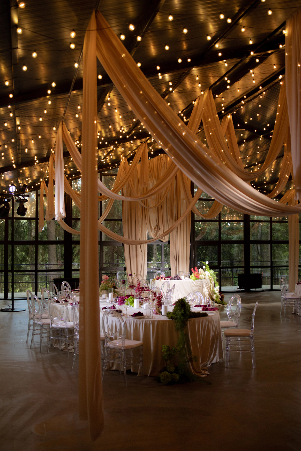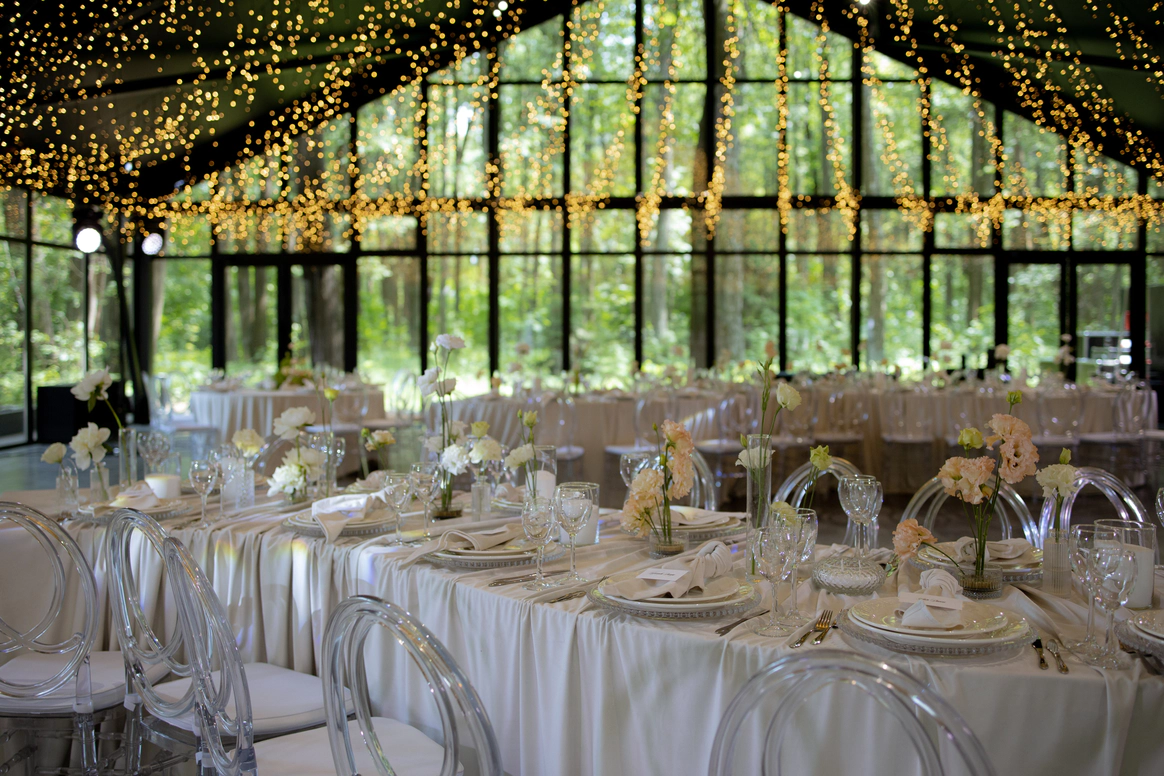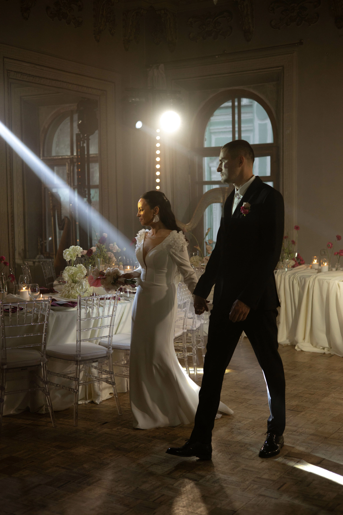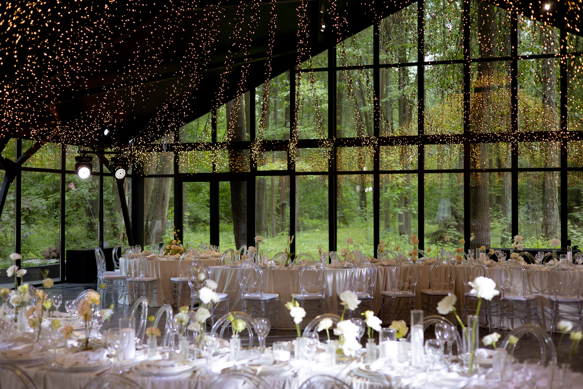 Этот проект стал настоящим воплощением идеи "Свадебного Наследия", где изысканная классика пространства была мастерски дополнена сценическим светом, создающим неповторимую атмосферу и эффект погружения.