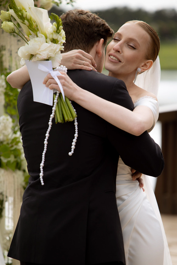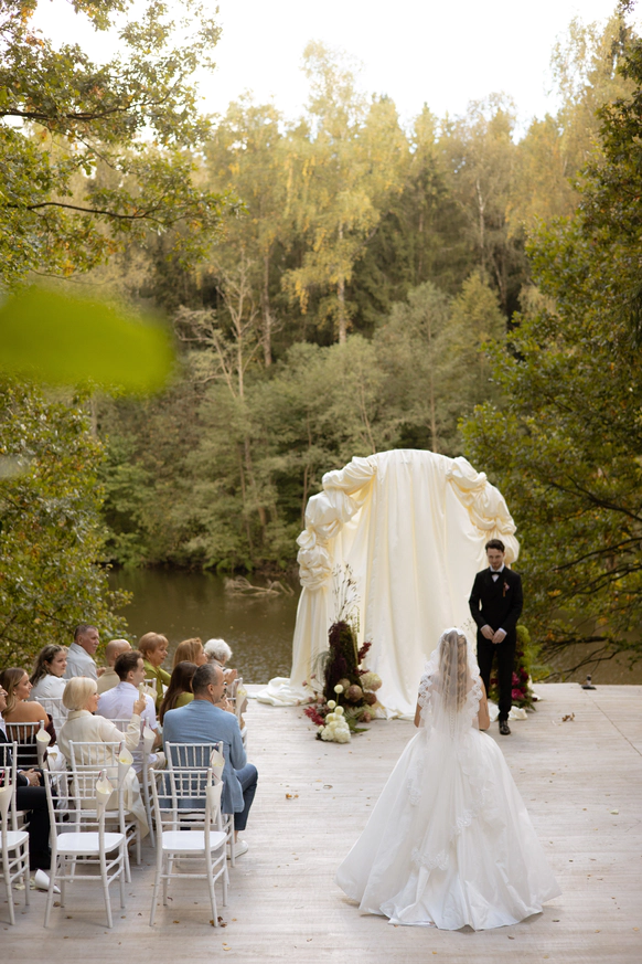 Мы создали уникальное событие, где живописная уединенная локация с элегантными классическими декорациями гармонично подчеркнула их путь, доказав, что настоящая любовь умеет ждать и расцветать, преодолевая время и расстояния.