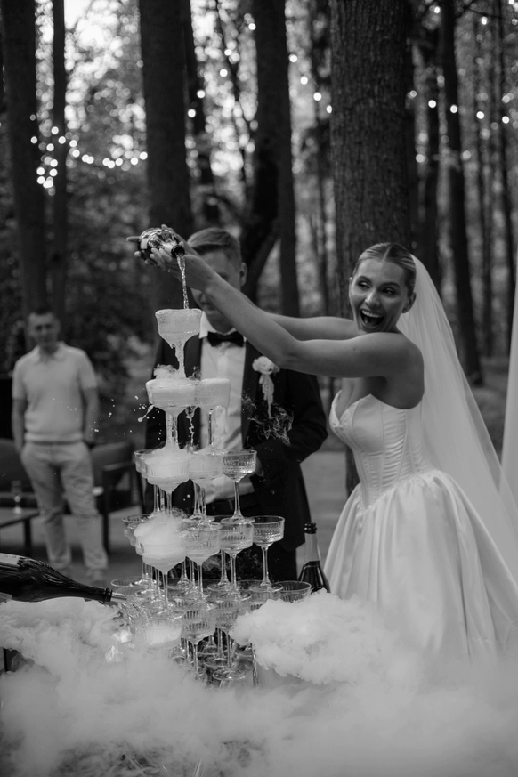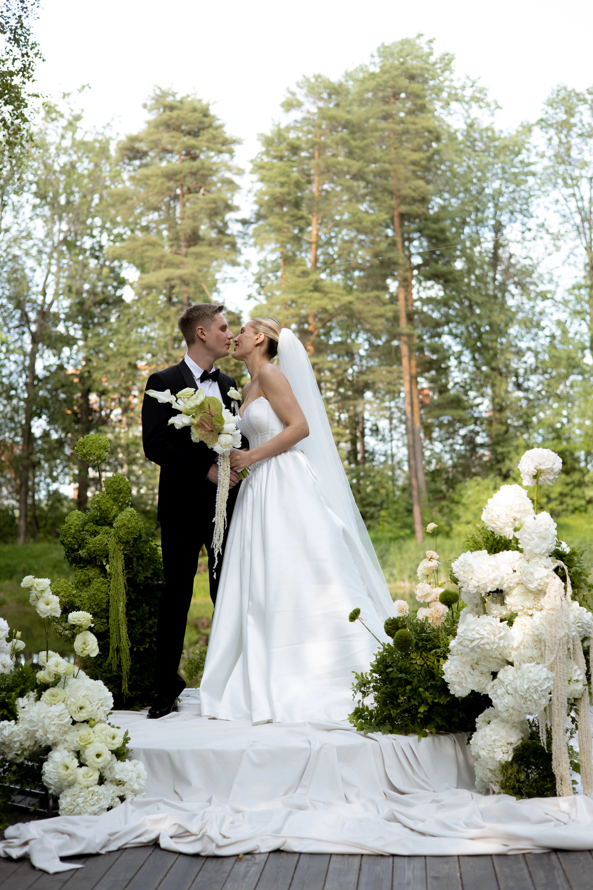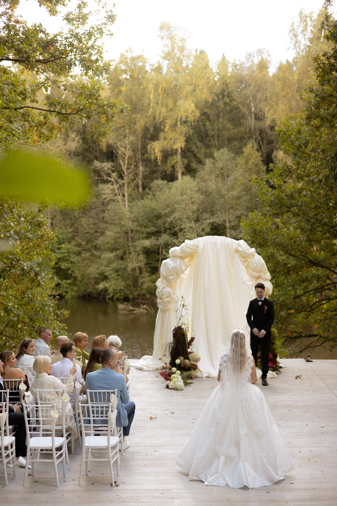 Эта свадьба — ода любви, что умеет ждать и возрождаться, воплощенная в классическом торжестве среди нетронутой природы. Концепция подчеркивает уникальный путь молодоженов, чья история вспыхнула вновь, символично доказывая силу настоящих чувств.