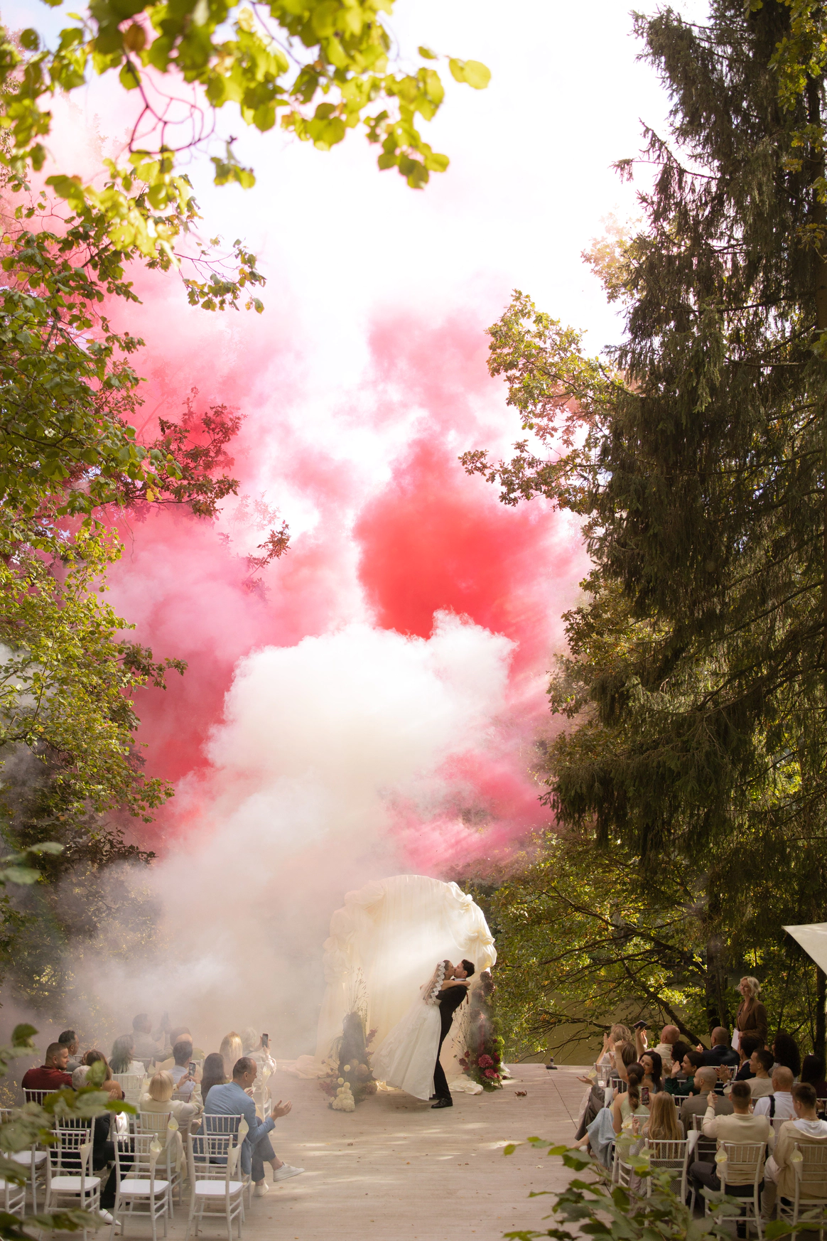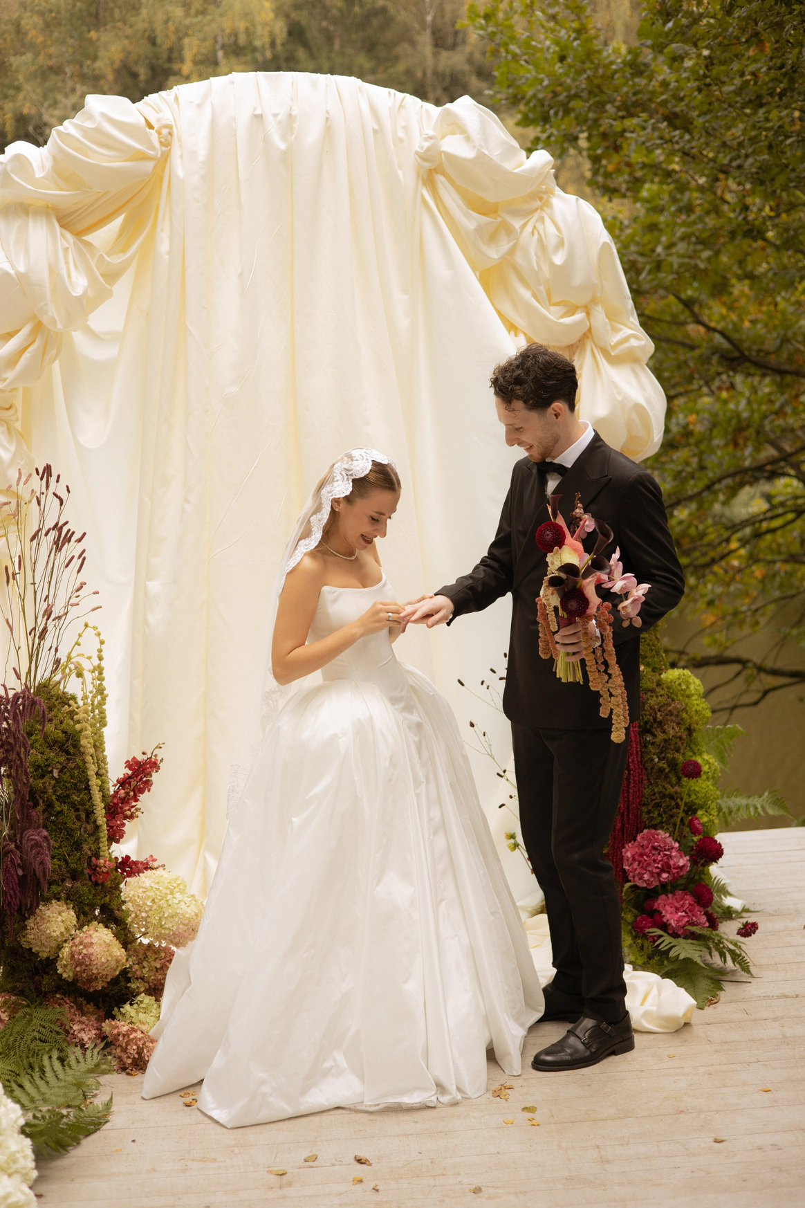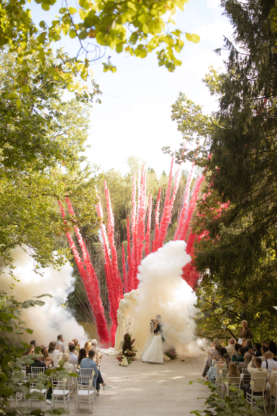 Эта свадьба — ода любви, что умеет ждать и возрождаться, воплощенная в классическом торжестве среди нетронутой природы. Концепция подчеркивает уникальный путь молодоженов, чья история вспыхнула вновь, символично доказывая силу настоящих чувств.