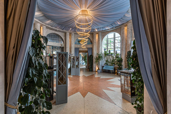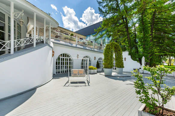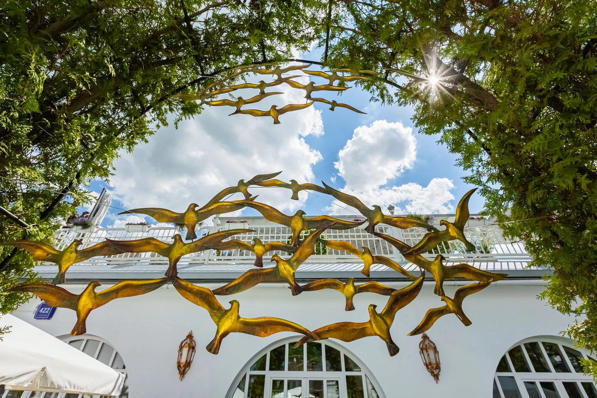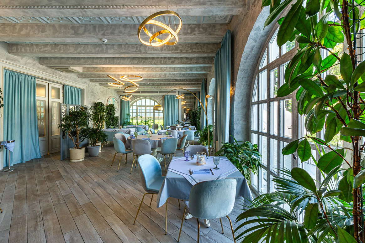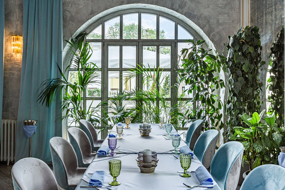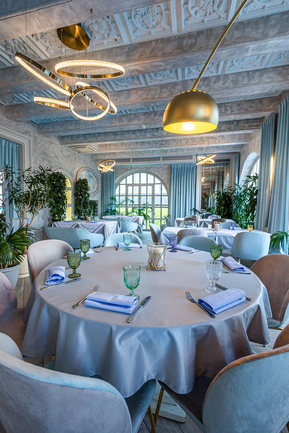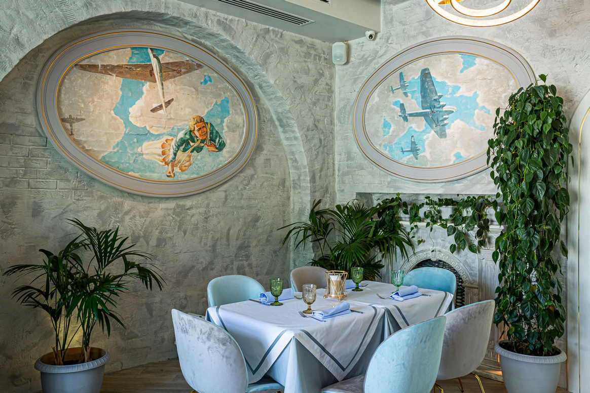 Ресторан «Московское Небо» — одна из самых роскошных площадок Москвы, расположенная на территории парка ВДНХ по соседству с Дворцом Бракосочетаний. 2 зала ресторана — малый и большой — идеально подходят для проведения свадебных торжеств: один из залов вмещает до 40 человек, другой — до 80. Просторный холл позволяет деликатно разделять поток гостей для общего комфорта. Лёгкий, воздушный интерьер в небесно-голубых тонах, утопающий в зелени и солнечном свете, дарит удовольствие и ощущение расслабленности. Наша особая гордость — фрески в жанре соцреализма, оммаж советским художникам и напоминание об историческом прошлом павильона — приведут в восхищение вас и гостей вашего праздника. Панорамные окна, изящная мебель и приятные глазу мелочи обстановки не потребуют от вас серьезных дополнительных затрат на декор. Отдельного внимания заслуживает наша авторская кухня, где в современных гастрономических тенденциях переосмыслены знакомые всем традиционные блюда. Непременный атрибут любого свадебного торжества — торт — можно заказать в нашем кондитерском цехе.