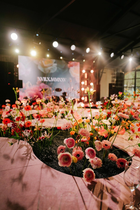 Саундтрек из «Интерстеллара» прошел через приглашения и церемонию. Авторский декор FLORAL STYLE - моховые холмы, стол-«лужайка» с сезонными цветами. Сквозной символ - дата римскими цифрами: на сцене, в полиграфии ручного литья и подарках, которые пара создавала своими руками для каждого гостя.