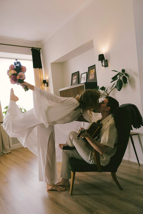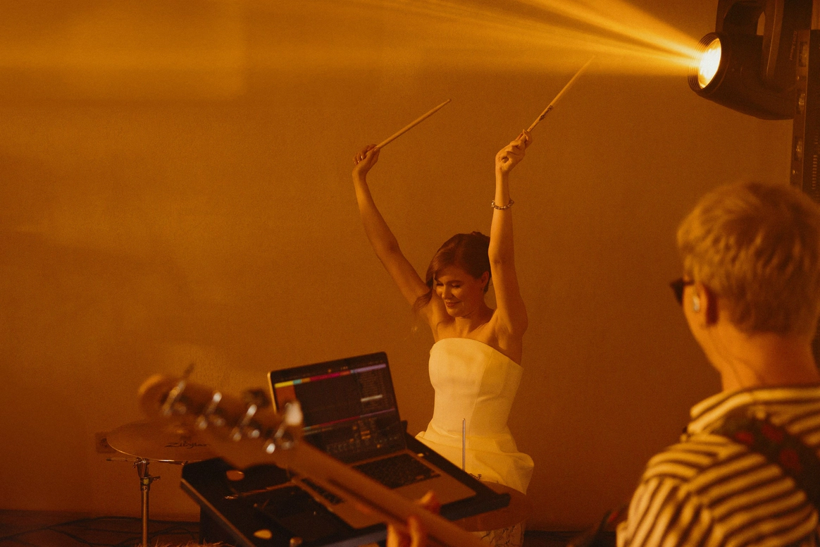 Никита всегда мечтал о девушке-барабанщице. Мы нашли для Насти преподавателя, организовали уроки, помогли спрятать палочки и трек «для тебя» в секрете полгода, чтобы в день свадьбы Настя сыграла для него - сюрприз удался на 100%.