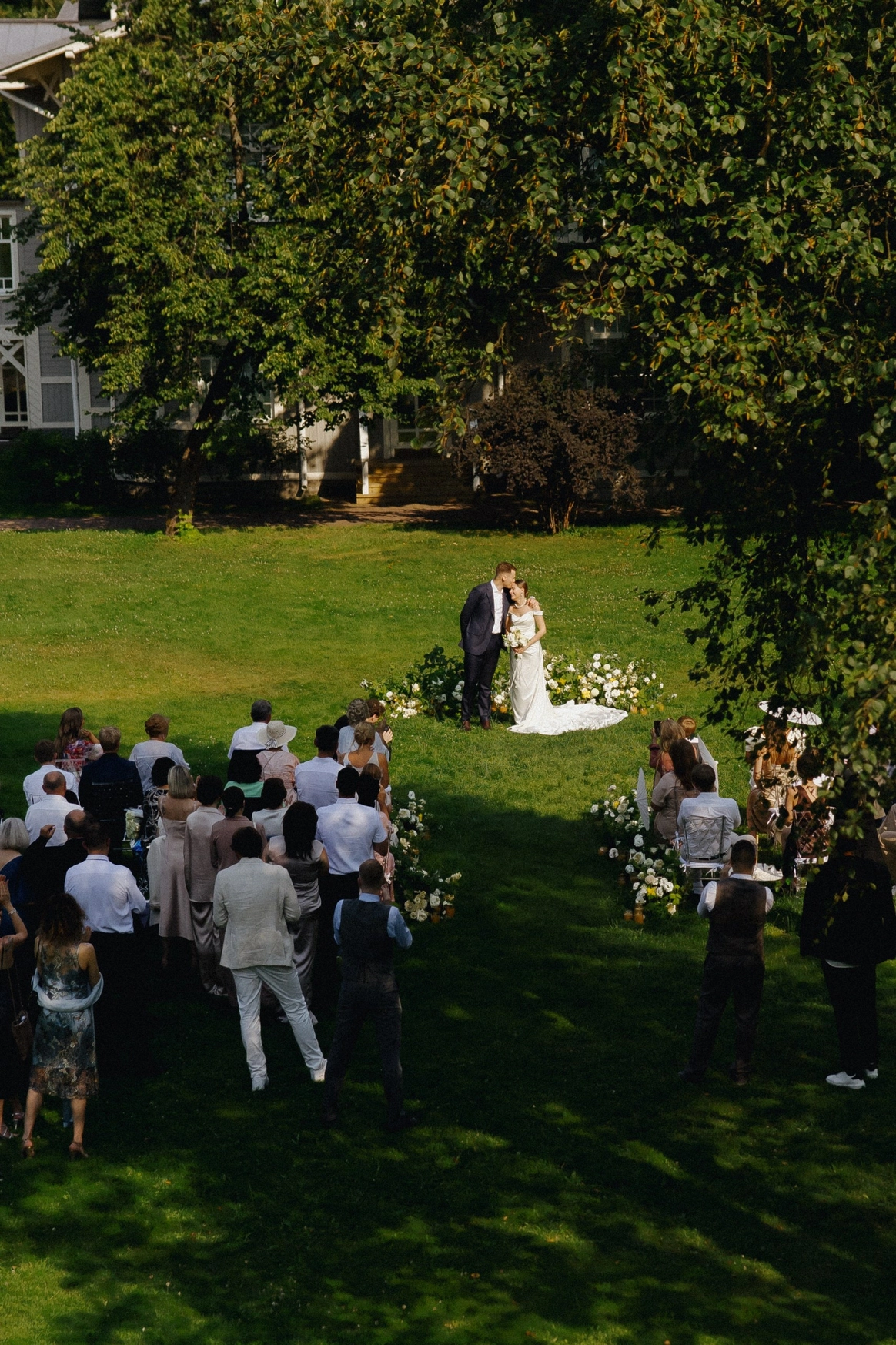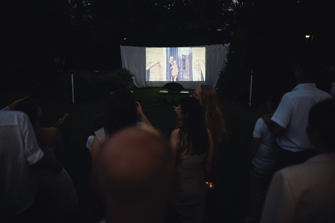 Уют и семейность создали с помощью зонирования и рассадки (П-образный стол). Гости распределялись по зонам лаунджа, бара, винила, скатерти для пожеланий, фотозоны на поляне, получали скетчи себя красивых на память и участвовали в МК по бачате. В финале свадьбы мы показали под открытым небом на проекторе клип-сюприз от родителей пары и ролик с лавстори - получилось ярко, тепло и памятно.