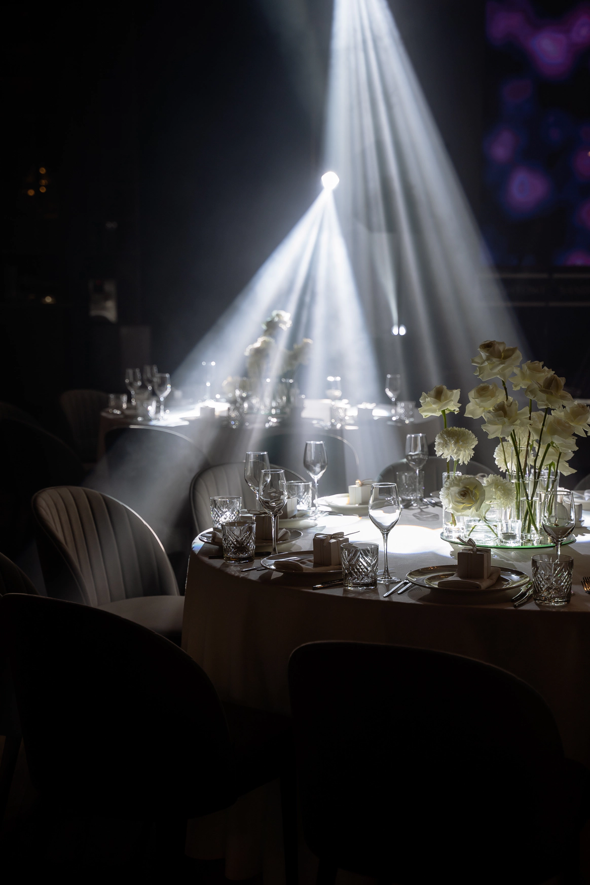 Фразу «Так влюбляться никто не планировал» сделали центром шоу. Придумали две арки: первая с падающей шторой, вторая с неоном.