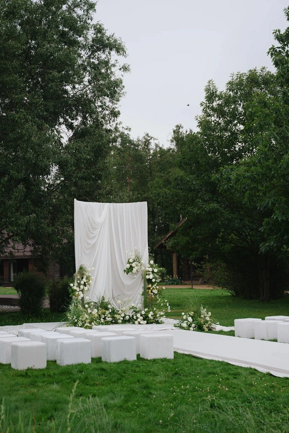 Уникальность проекта заключалась в задаче сохранить камерную атмосферу при количестве гостей 100 человек. Пара очень хотела сохранить формат "для самых близких", чтобы не было ощущения масштабного банкета.