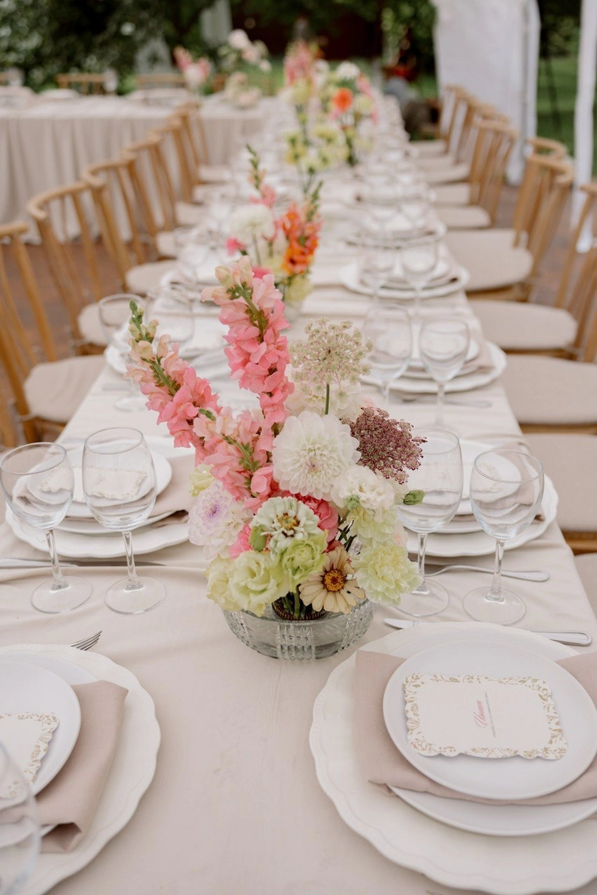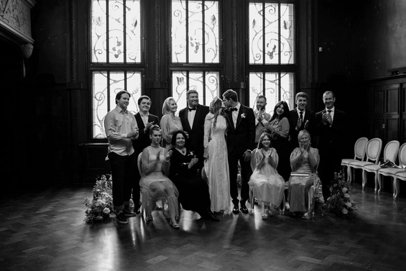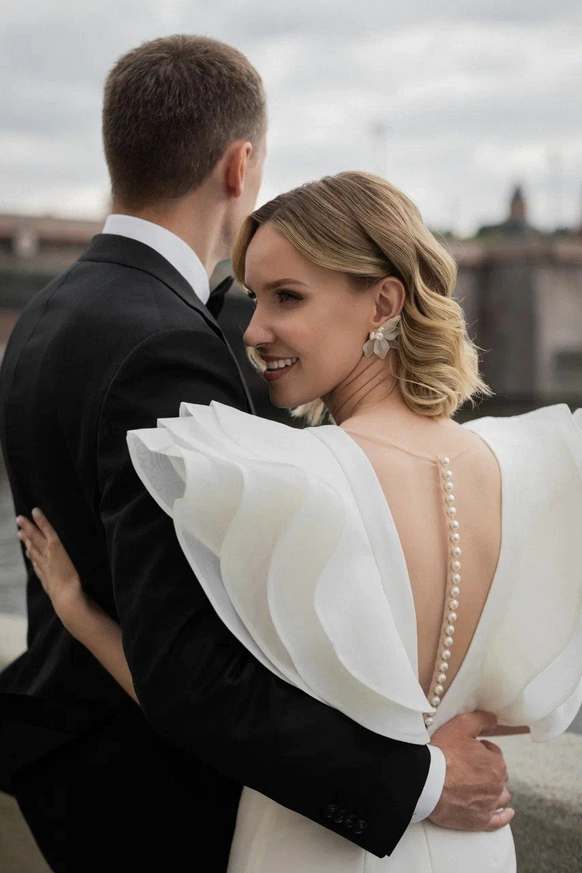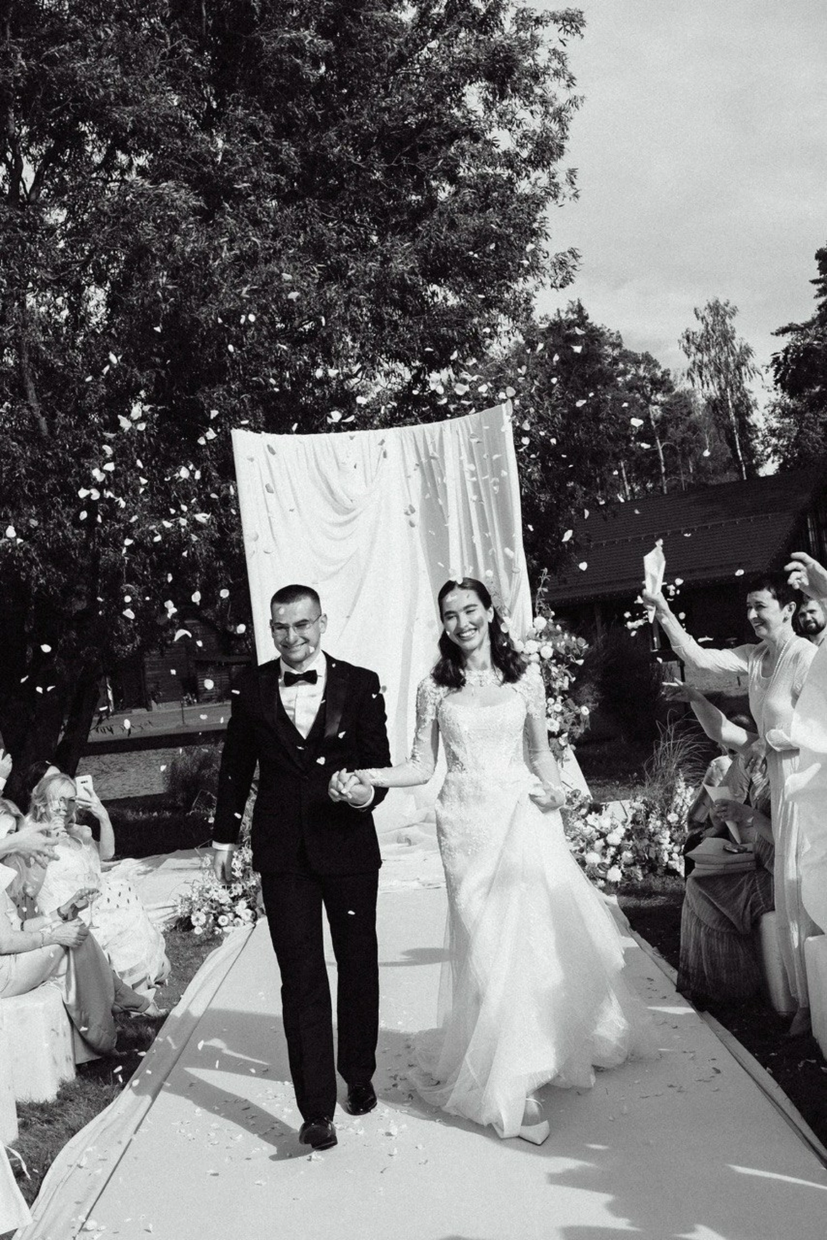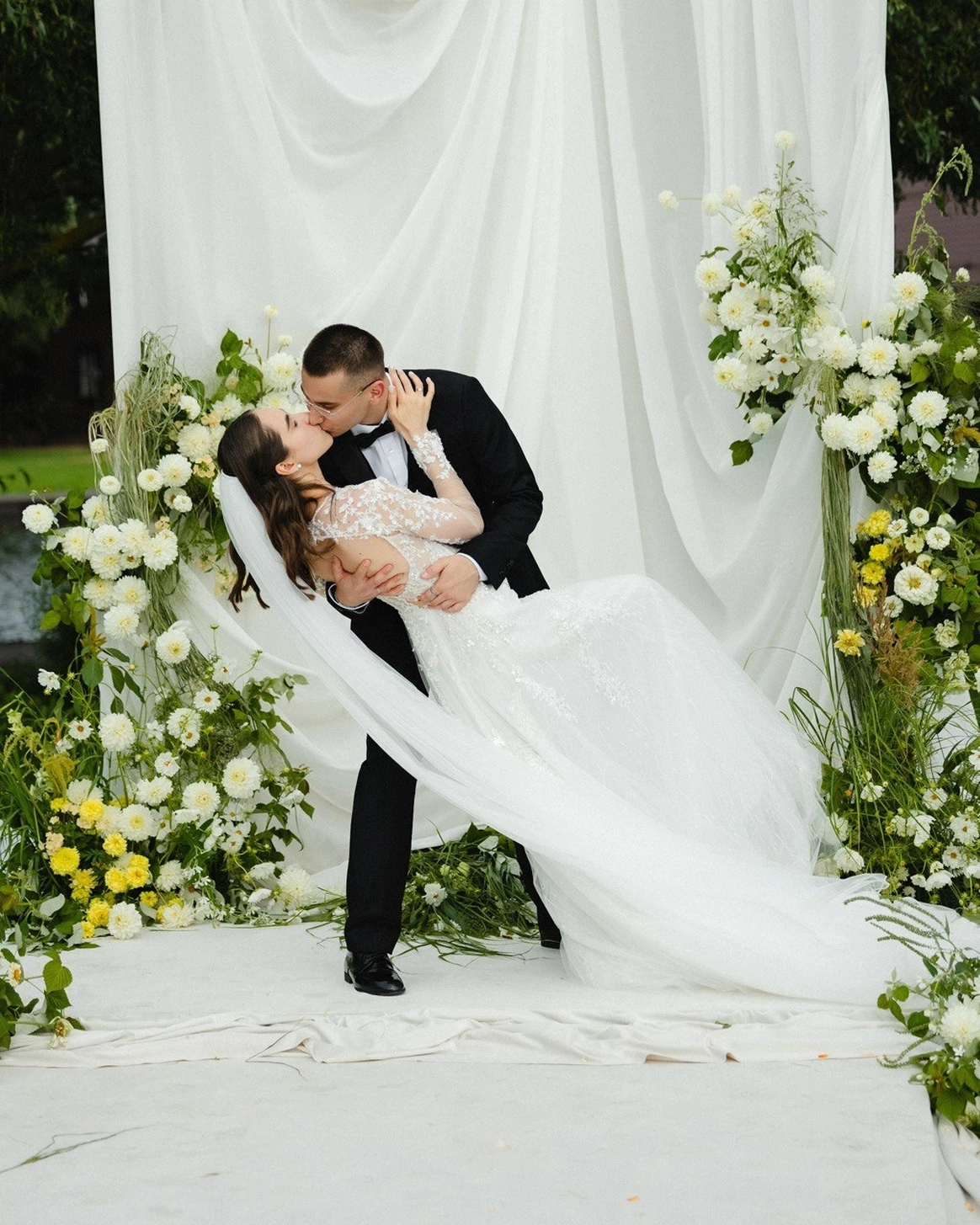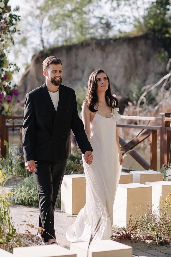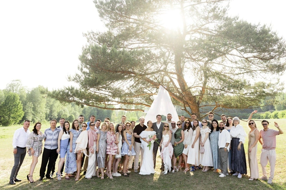 Пара вместе более 20 лет, и свадьба стала не отправной точкой их семьи, а долгожданным праздником для близких друзей, которые были частью этой истории много лет.