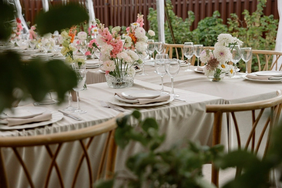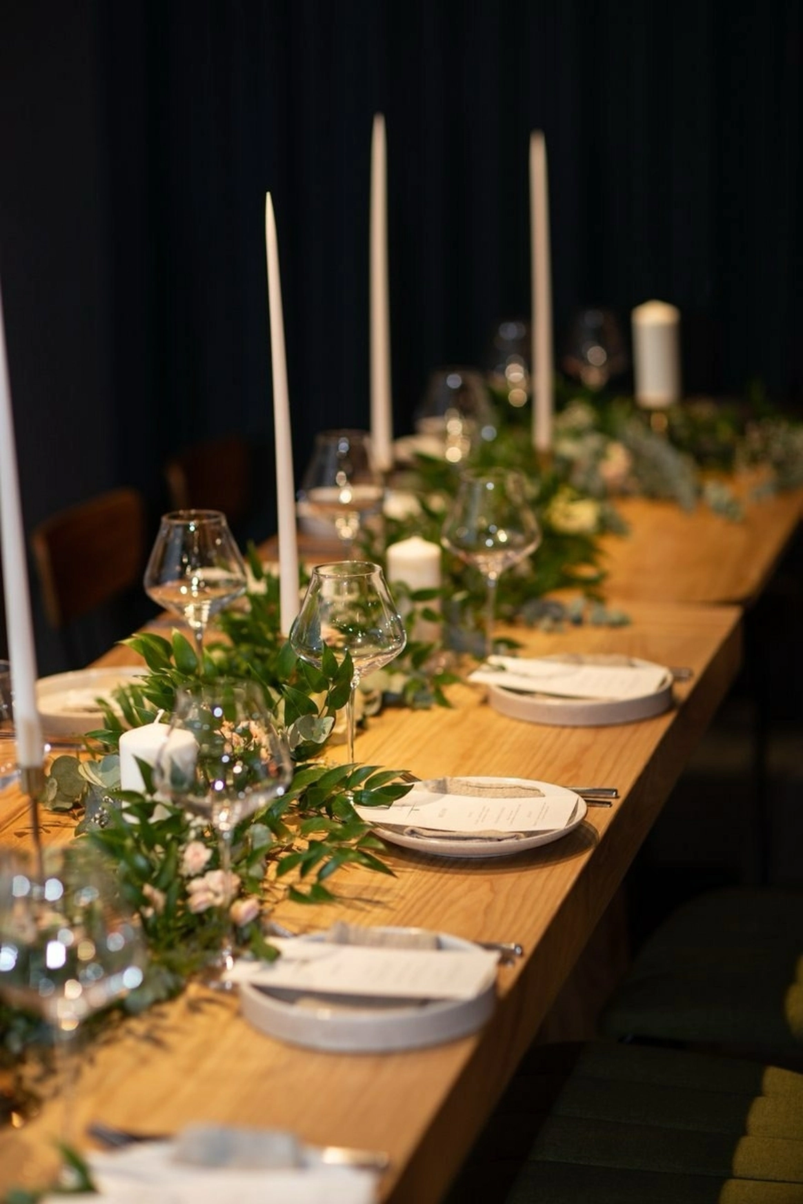 Мы выстроили пространство так, что все гости чувствовали себя частью события, и имели возможность общаться. Продуманная рассадка и работа со светом позволили создать теплую, объединяющую атмосферу.