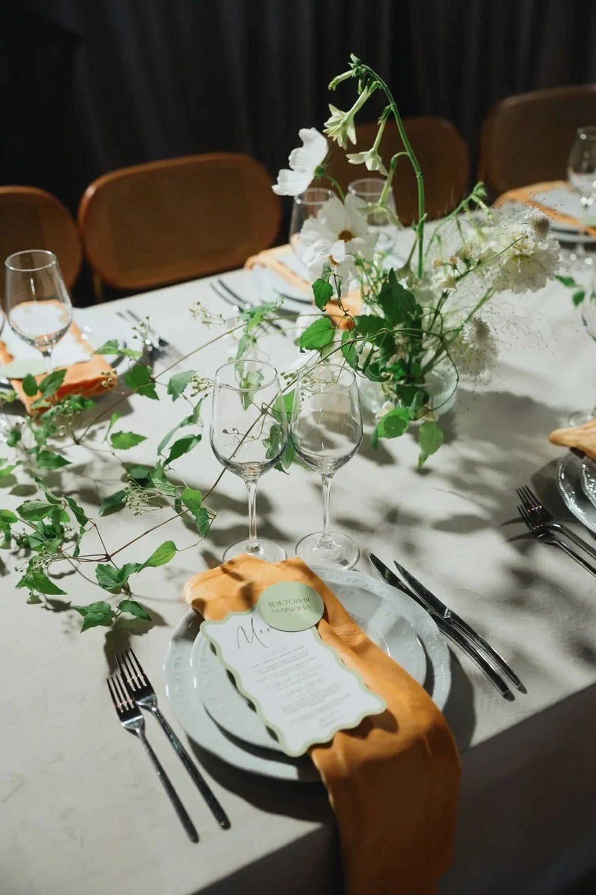 Пара знакома с первого класса, 11 лет они учились вместе, но их история любви началась гораздо позже, уже после окончания школы. Концепция свадьбы строилась вокруг идеи пути - от детской дружбы к осознанному выбору друг друга.
