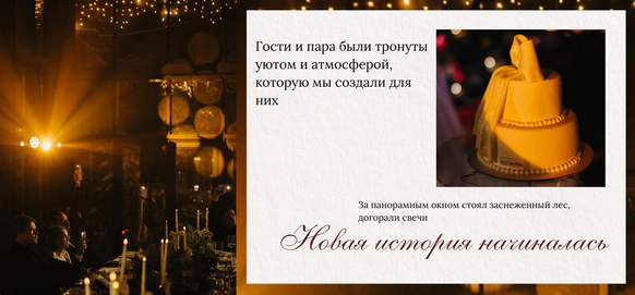 Идея: Раскрыть важные детали о паре для близких, уделить персональное внимание каждому гостю, вспоминать теплые совместные события за ужином при свечах